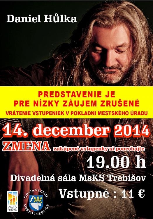 Predstavenie Daniel Hůlka je pre nízky záujem zrušené.