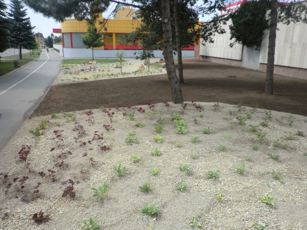 Pred mestským úradom bolo vysadených spolu 450 ks vlhkomilných a suchomilných trvaliek. Prvý zrealizovaný vlhkomilný záhon bude plniť hneď viacero cieľov. Doplní zásoby podzemných vôd postupným vsakovaním zrážkovej vody, zlepší mikroklímu okolitého prostredia, poskytne útočisko pre potravinový reťazec pre voľne žijúce živočíchy, ušetrí financie za odkanalizovanie dažďovej vody a v neposlednom rade skrášli priestor svojou atraktívnou záhradnou architektúrou.