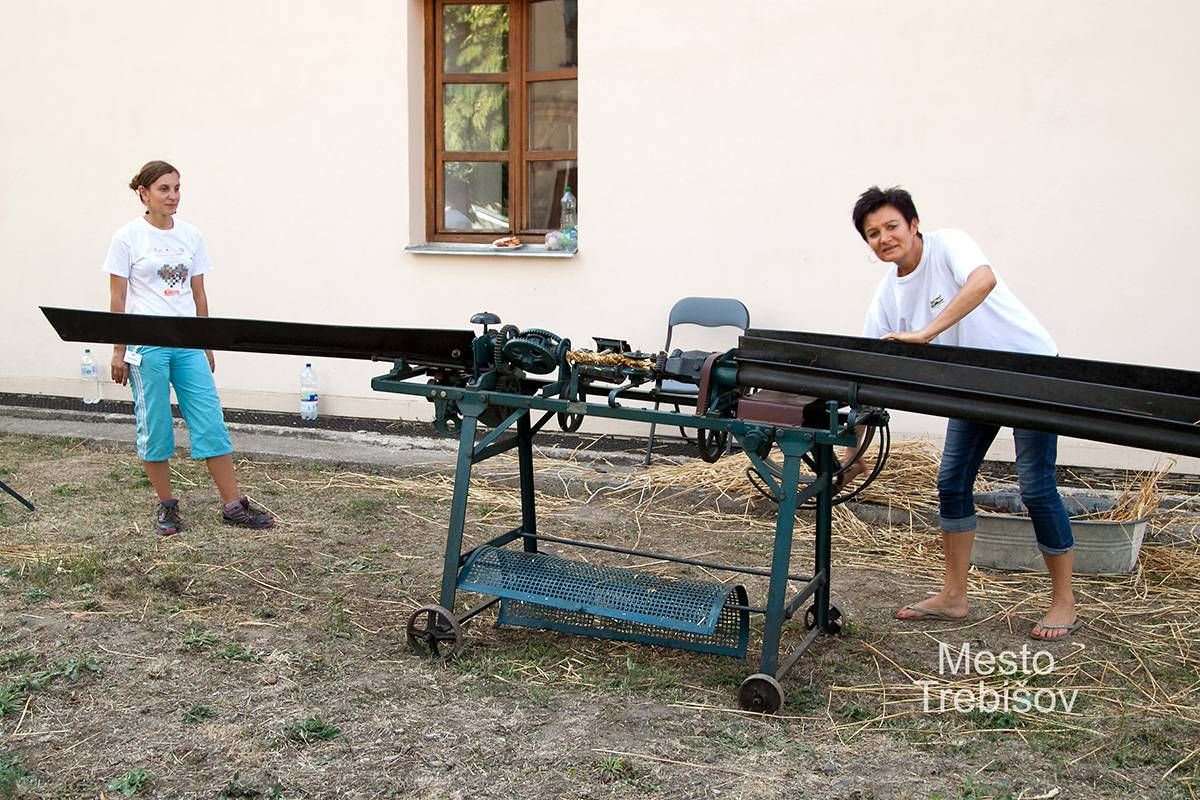 Pliesť lano na spletacom stroji z 19. storočia si zvedaví Trebišovčania neváhali tiež vyskúšať.