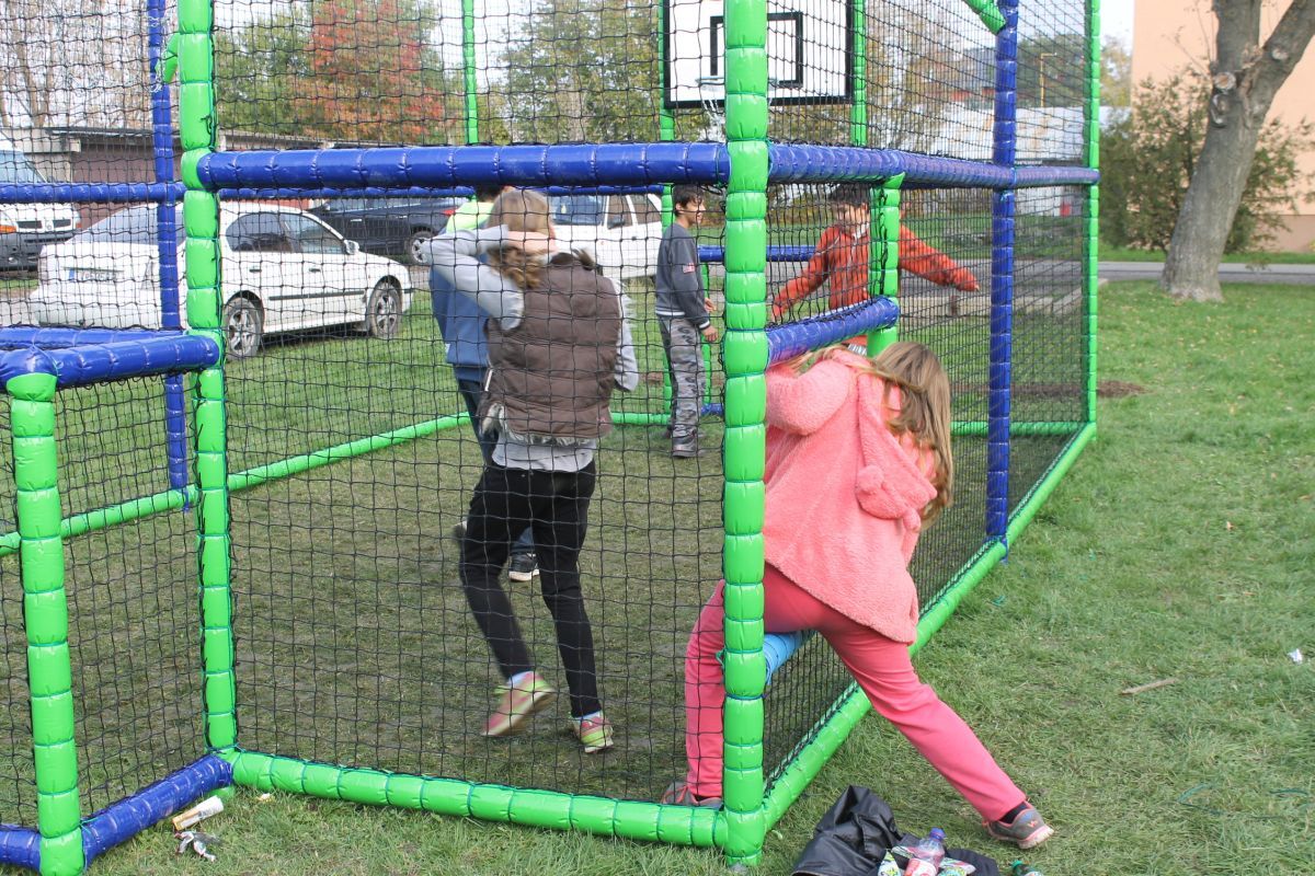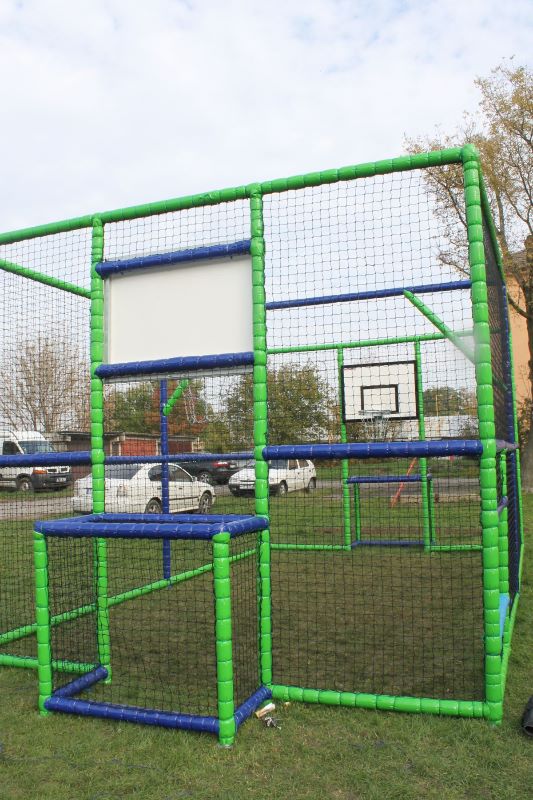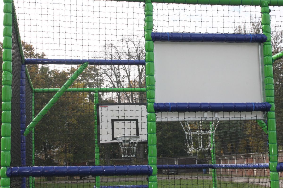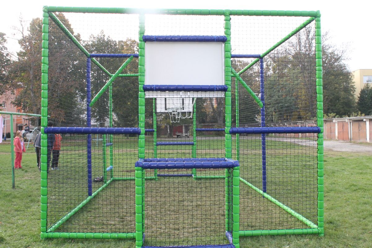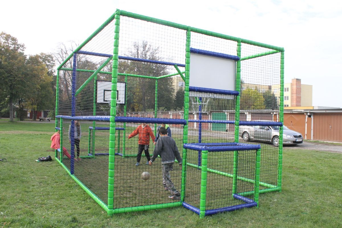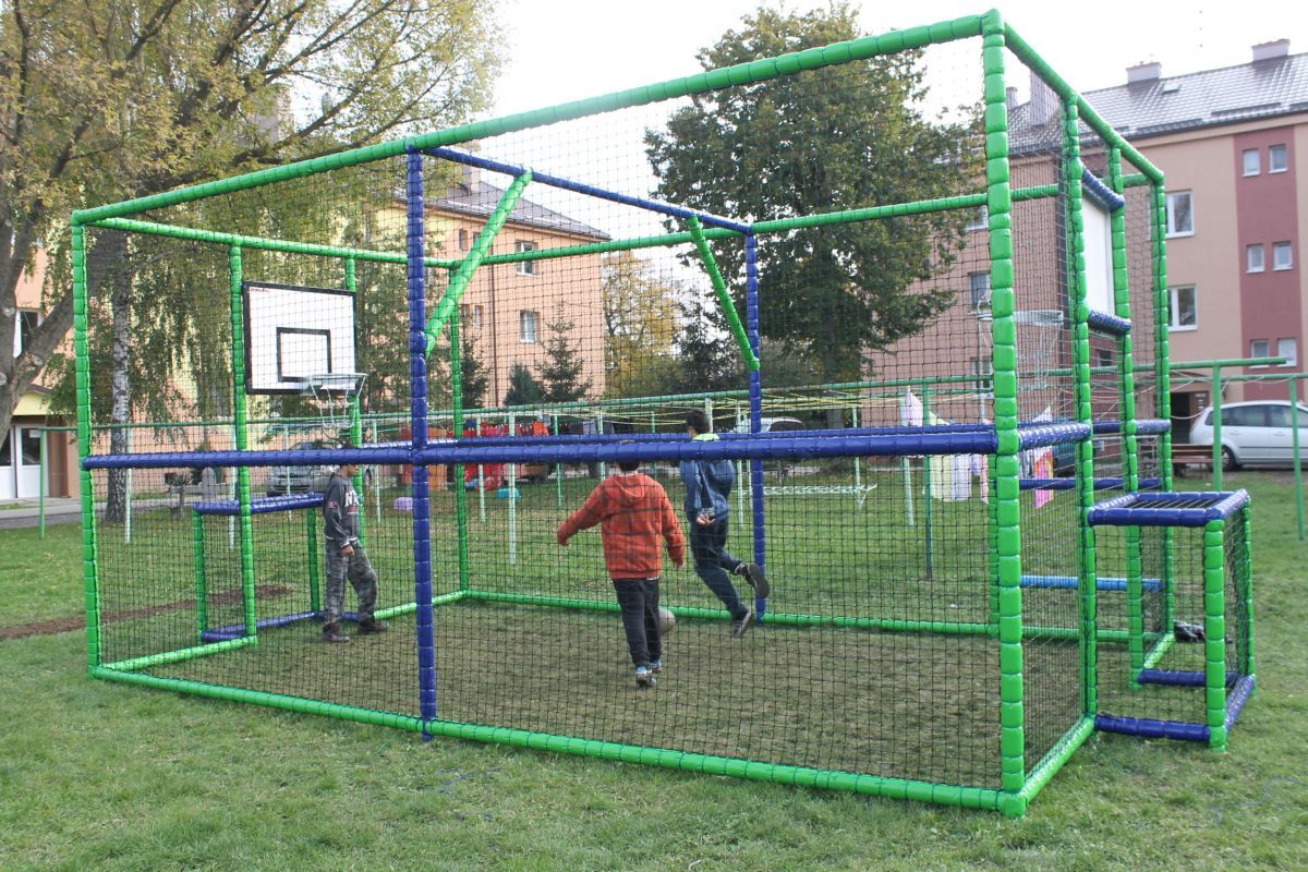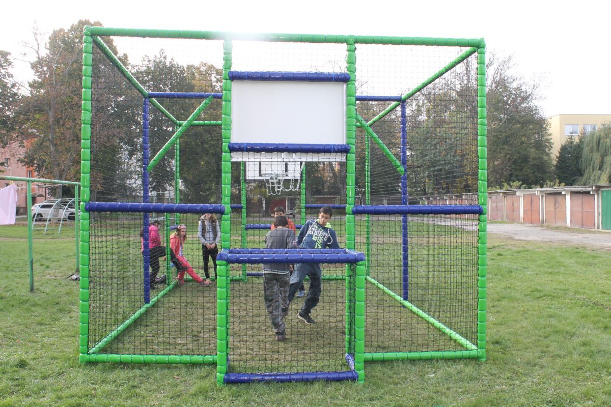 Projekt riešil prvky futbalového ihriska s basketbalovými košmi. Prvky sú umiestnené v oplotenom priestore tak, aby cez ne neprechádzal žiaden iný predmet.