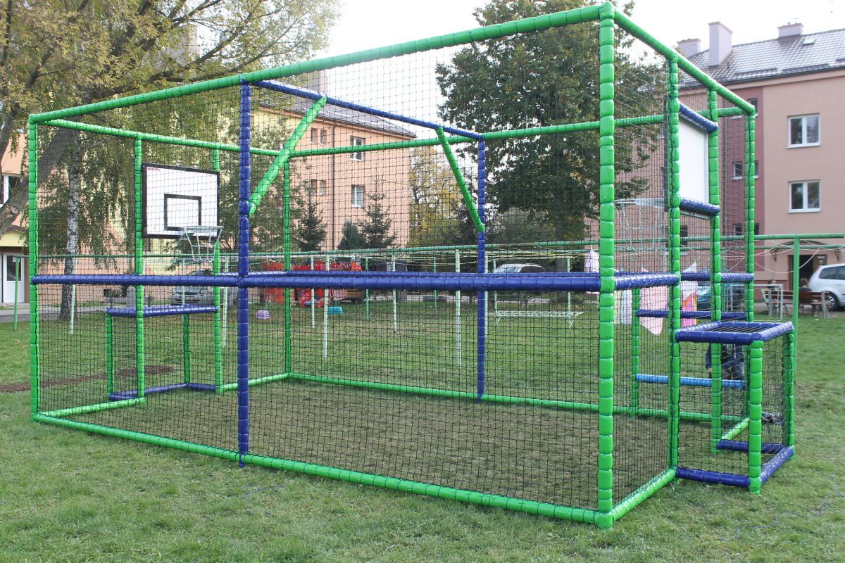 Detské multifunkčné ihrisko je zhotovené z pozinkovanej oceľovej konštrukcie, obalenej ochranným penovým materiálom. Obsahuje bezpečnostné siete uchytené priamo na konštrukciu.