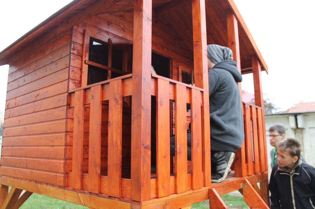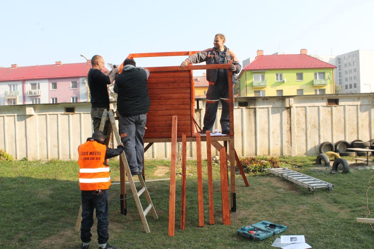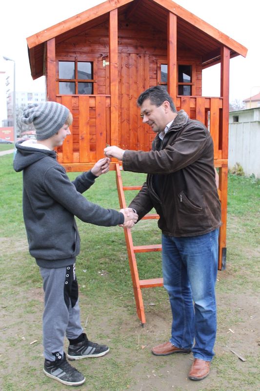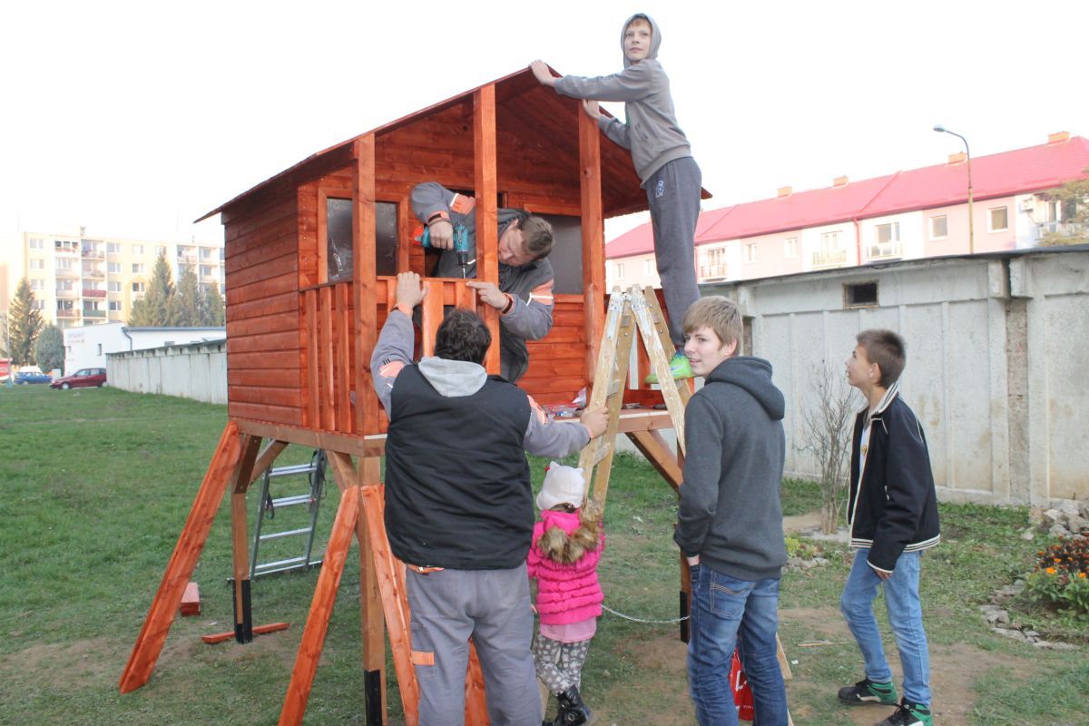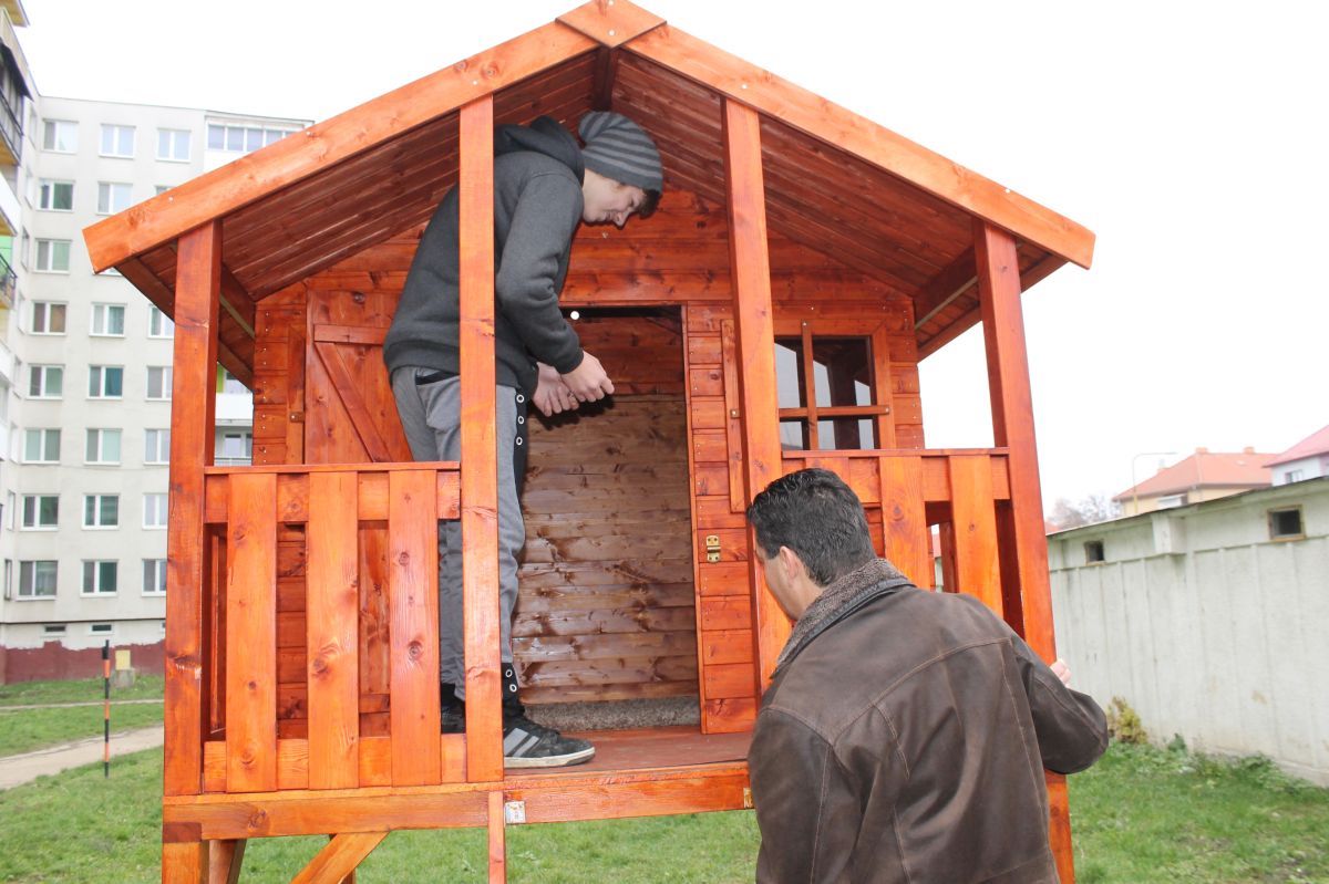 Keďže vedenie mesta pred pár týždňami prejavilo ochotu pomôcť deťom zo sídliska na ulici Komenského v možnostiach trávenia voľného času, hľadali sa spôsoby, ako to urobiť. Mladí školáci tejto časti mesta mali veľký záujem o drevený domček, v ktorom by sa venovali hrám aj počas nepriaznivého počasia. Mestu sa podarilo nájsť darcov, ktorí sa rozhodli finančne podieľať na zabezpečení domčeka pre tieto deti. Pri jeho montovaní pracovníkom Mesta pomáhali rodičia detí. S veľkou radosťou sa do sekundárnych prác zapojili i samotné deti. Postavený detský domček je zo severského smreku a skladá sa z predmontovaných panelových stien, dvoch menších okien s plexisklom a dvier s otváraním na terasu, ktorá je jeho súčasťou. Kvalitný a bezpečný domček môžu deti využívať neobmedzene.