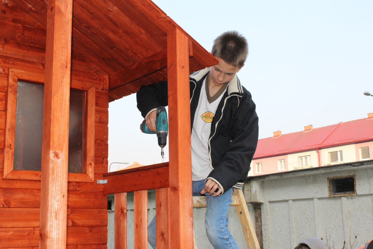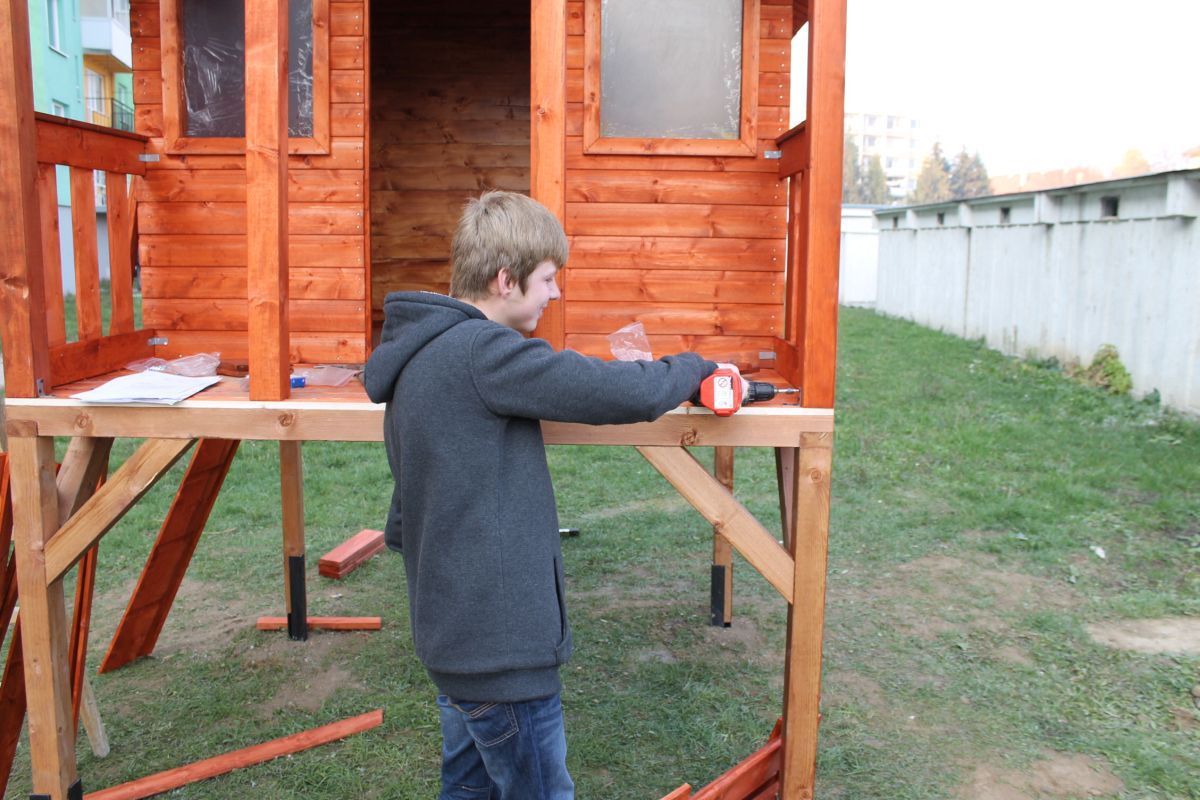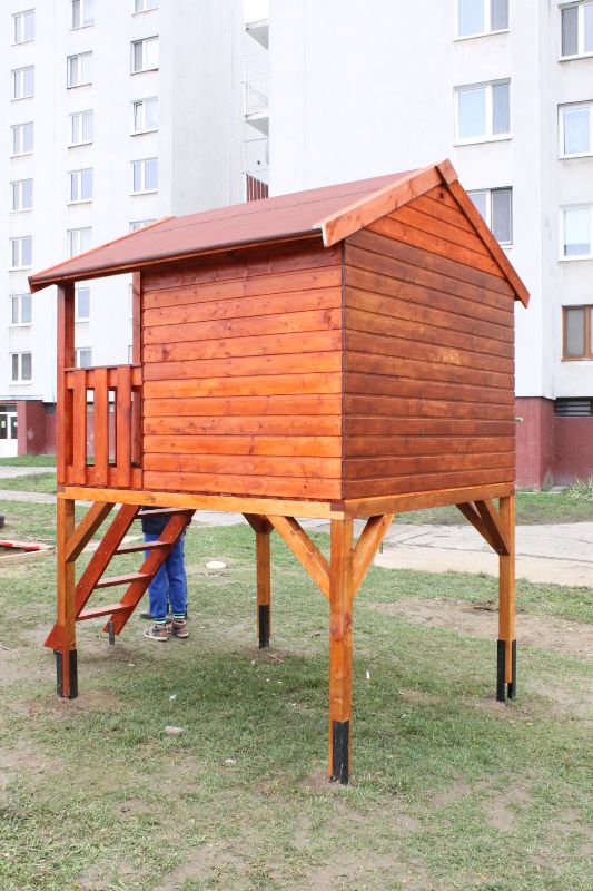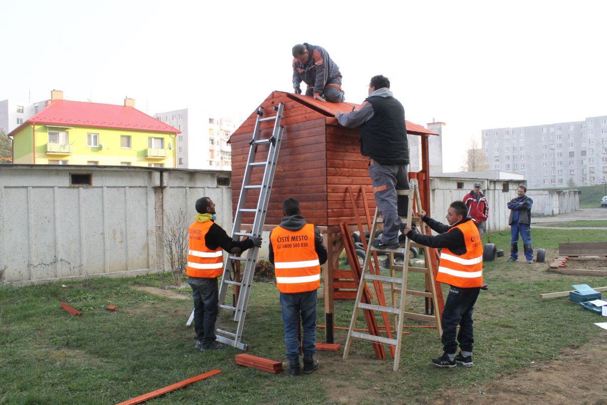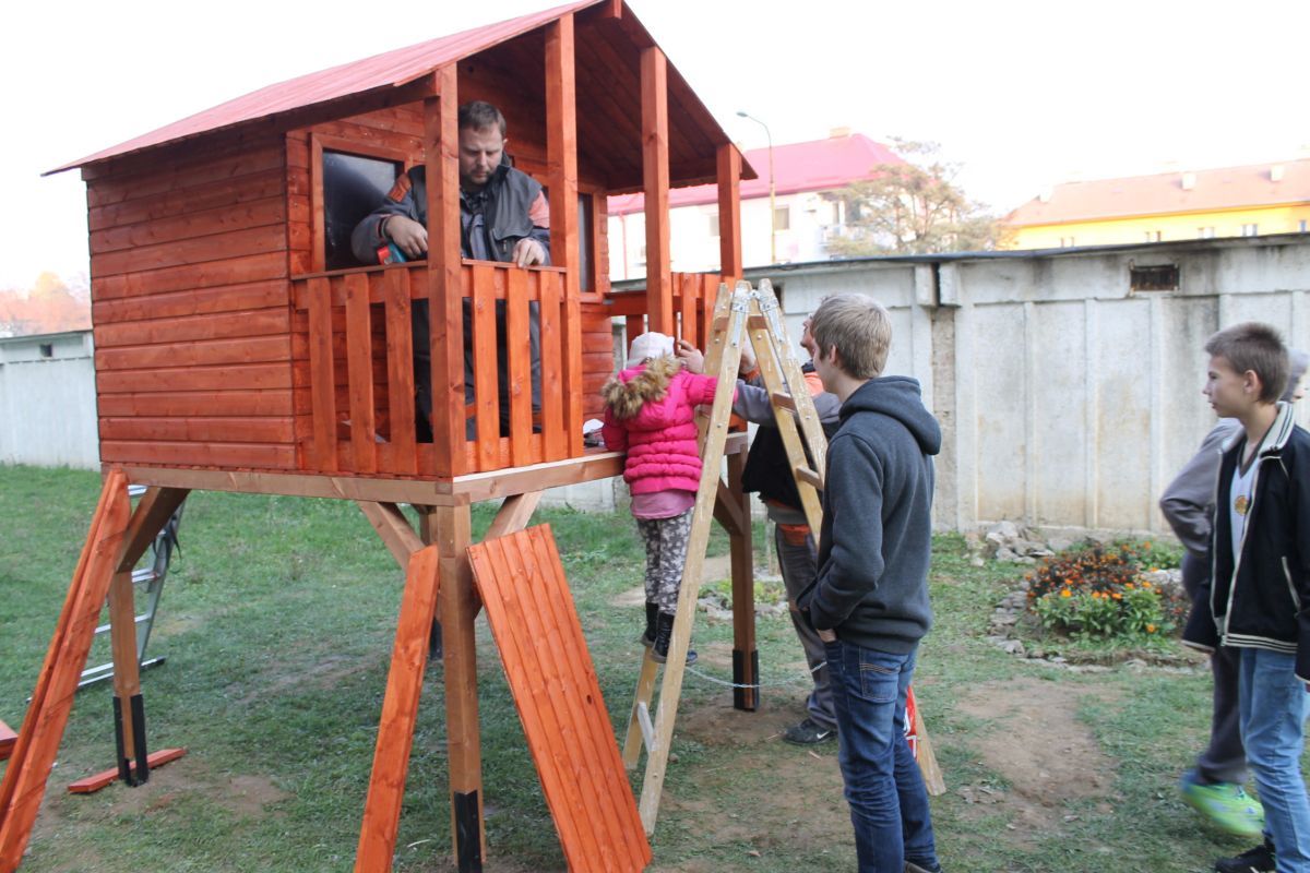 Keďže vedenie mesta pred pár týždňami prejavilo ochotu pomôcť deťom zo sídliska na ulici Komenského v možnostiach trávenia voľného času, hľadali sa spôsoby, ako to urobiť. Mladí školáci tejto časti mesta mali veľký záujem o drevený domček, v ktorom by sa venovali hrám aj počas nepriaznivého počasia. Mestu sa podarilo nájsť darcov, ktorí sa rozhodli finančne podieľať na zabezpečení domčeka pre tieto deti. Pri jeho montovaní pracovníkom Mesta pomáhali rodičia detí. S veľkou radosťou sa do sekundárnych prác zapojili i samotné deti. Postavený detský domček je zo severského smreku a skladá sa z predmontovaných panelových stien, dvoch menších okien s plexisklom a dvier s otváraním na terasu, ktorá je jeho súčasťou. Kvalitný a bezpečný domček môžu deti využívať neobmedzene.