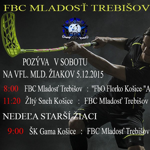 OZ FBC Mladosť Trebišov usporiada v mestskej športovej hale v dňoch 5. a 6. decembra 2015 ďalšie kolo Východoslovenskej florbalovej ligy mladších a starších žiakov.