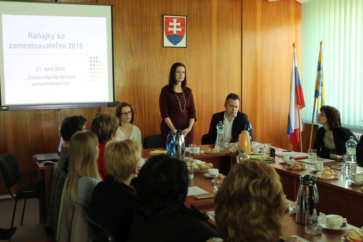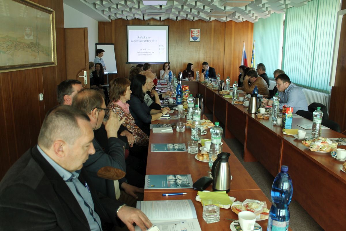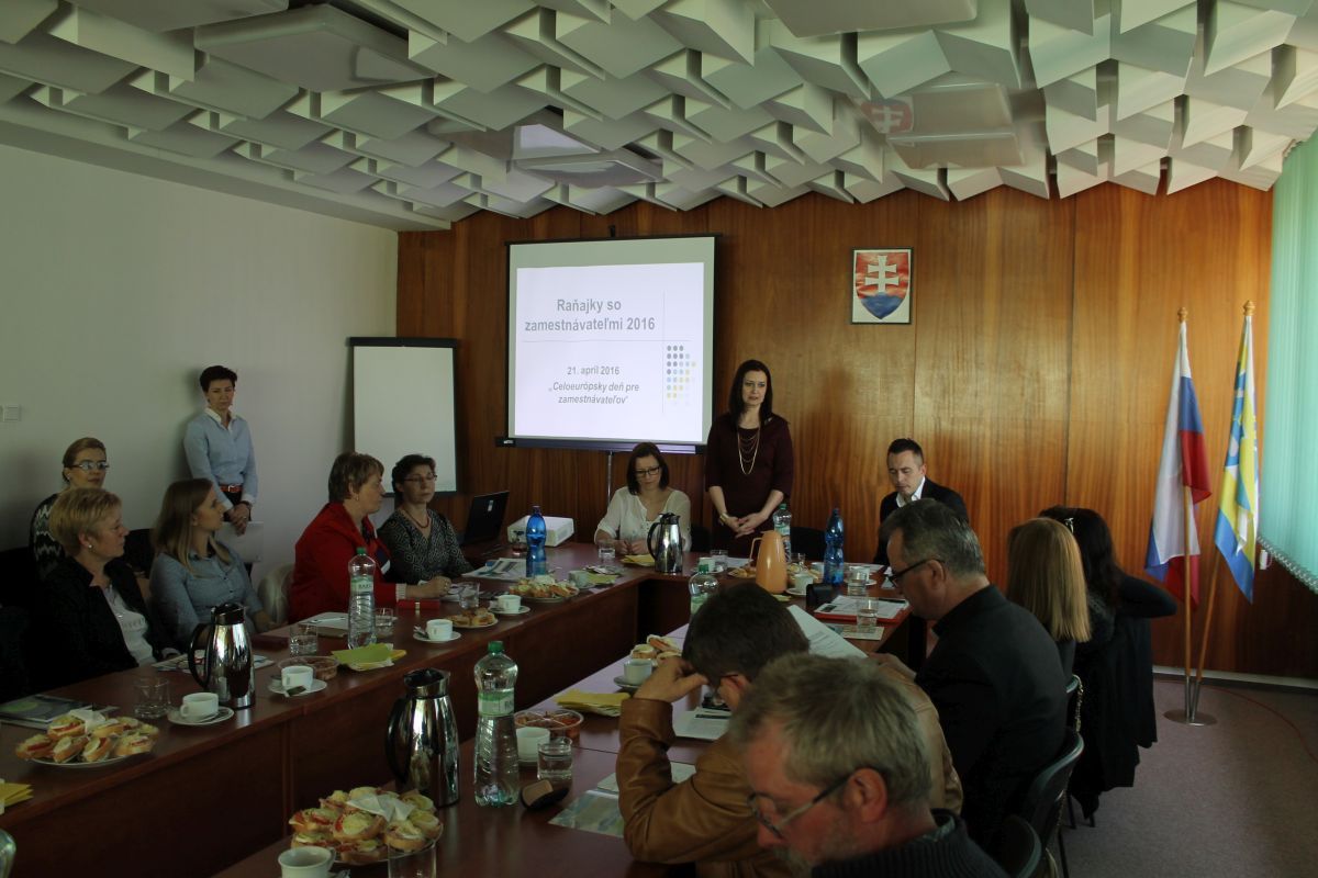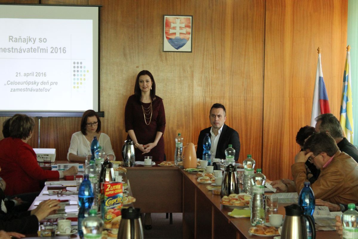 Na Mestskom úrade v Trebišove sa vo štvrtok 21.4.2016 uskutočnilo pracovné stretnutie primátora mesta so zástupcami Úradu práce sociálnych vecí a rodiny Trebišov a zamestnávateľmi v rámci Celoeurópskeho dňa pre zamestnávateľov. Cieľom stretnutia bolo prehĺbenie vzájomných vzťahov medzi úradom a zamestnávateľmi, predstavenie nových národných projektov, novelizácie zákonov a prezentovanie legislatívnych zmien súvisiacich s mobilitou v rámci krajín EÚ.