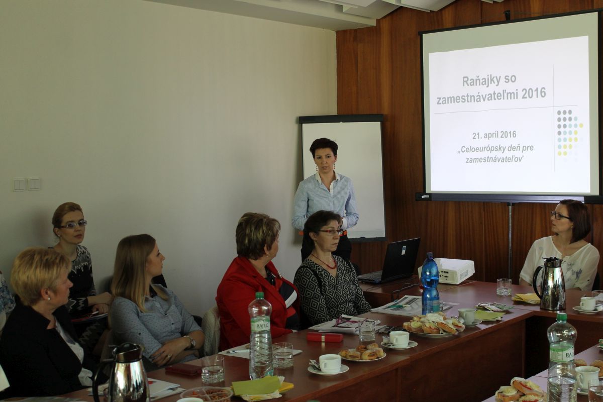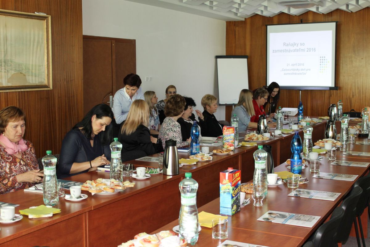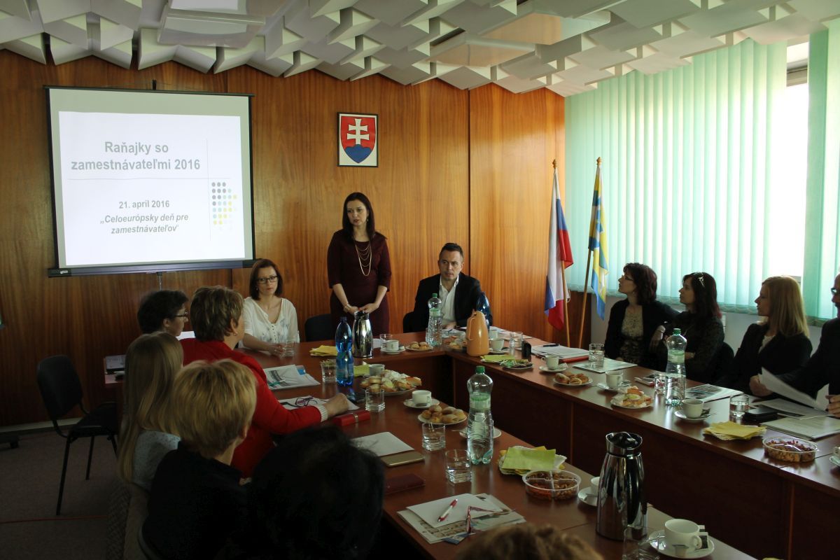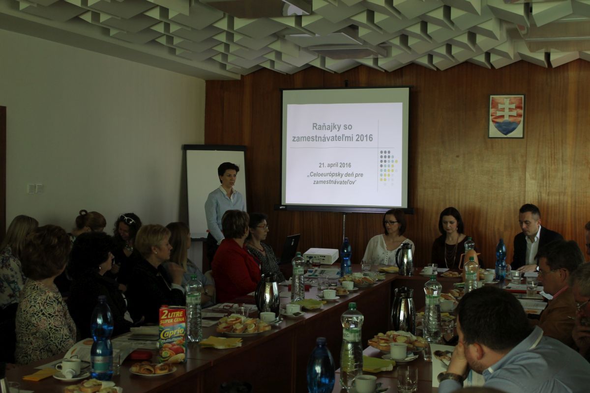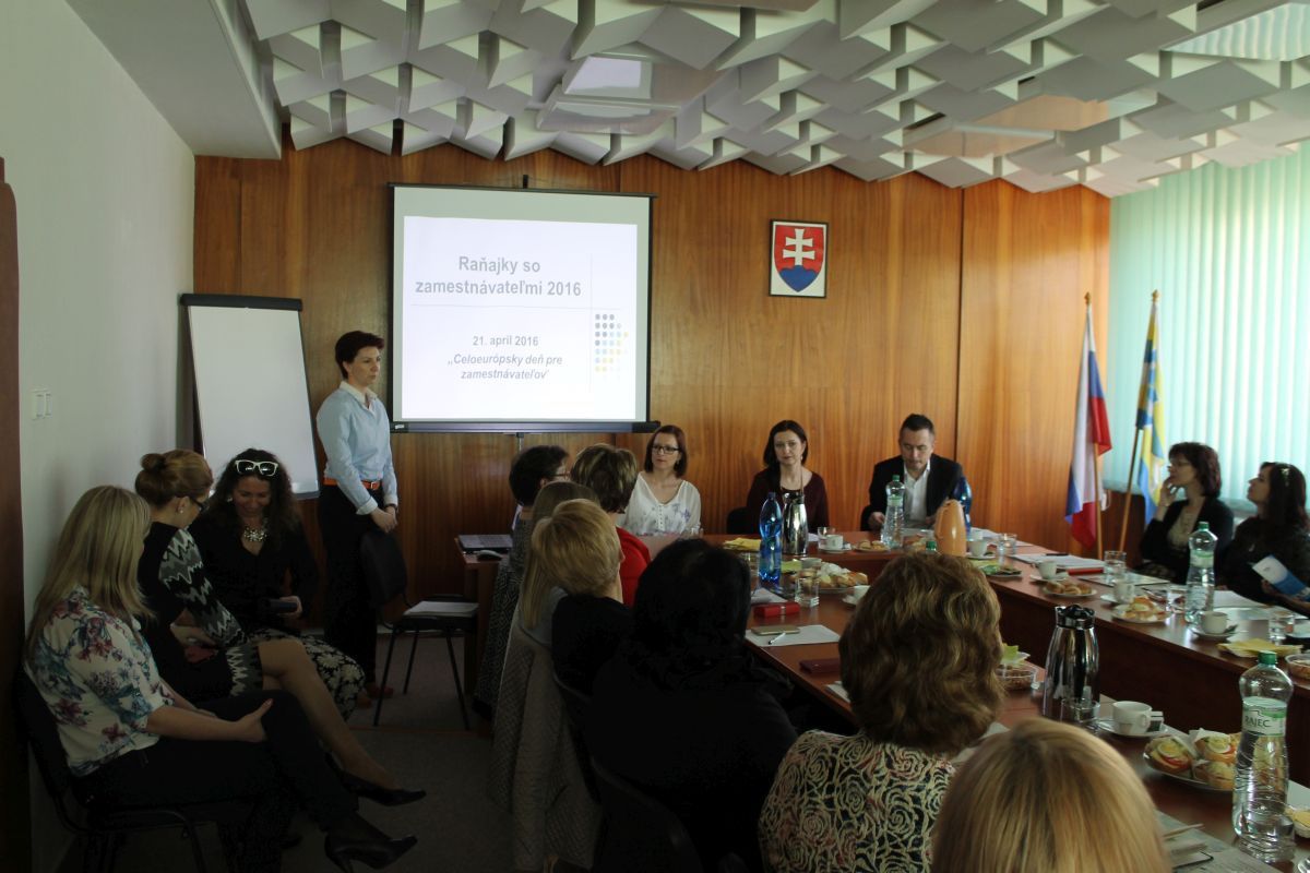 Na Mestskom úrade v Trebišove sa vo štvrtok 21.4.2016 uskutočnilo pracovné stretnutie primátora mesta so zástupcami Úradu práce sociálnych vecí a rodiny Trebišov a zamestnávateľmi v rámci Celoeurópskeho dňa pre zamestnávateľov. Cieľom stretnutia bolo prehĺbenie vzájomných vzťahov medzi úradom a zamestnávateľmi, predstavenie nových národných projektov, novelizácie zákonov a prezentovanie legislatívnych zmien súvisiacich s mobilitou v rámci krajín EÚ.