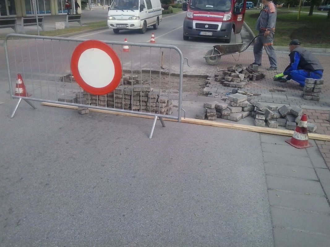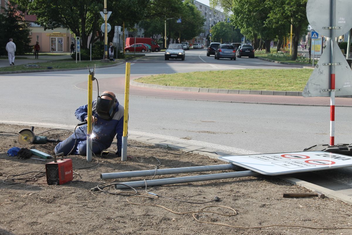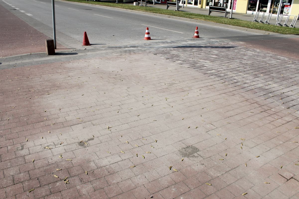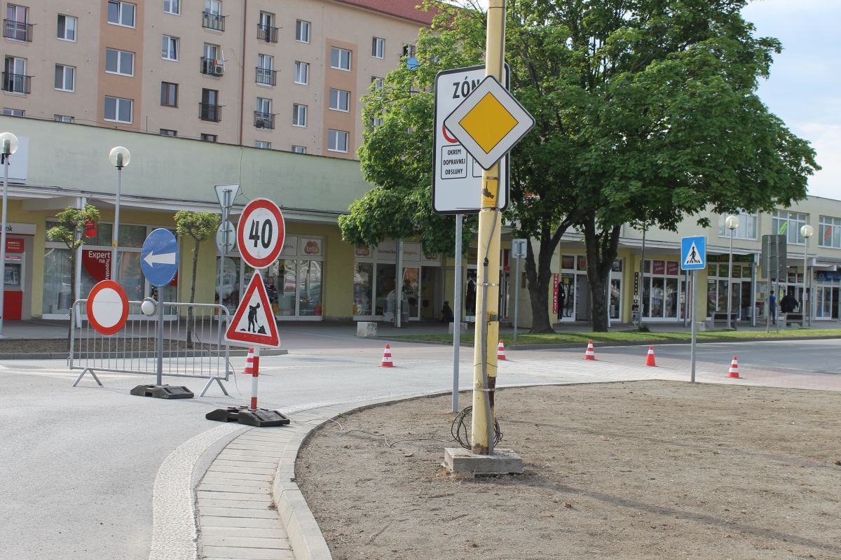 Pracovníci stavebnej skupiny mesta v období od 4. do 8.mája 2016 opravovali priechody pre chodcov zo zámkovej dlažby nachádzajúce sa na Ulici M. R. Štefánika - kruhová križovatka spájajúca Ulicu T. G. Masaryka a Poštovú ulicu. Na priechodoch boli v jednom jazdnom pruhu vyjazdené časti plôch, nerovný povrch a uvoľnená dlažba. Dlažba bola vybraná, podklad vyrovnaný polosuchým betónom a pracovníkmi nanovo položená pôvodná dlažba.