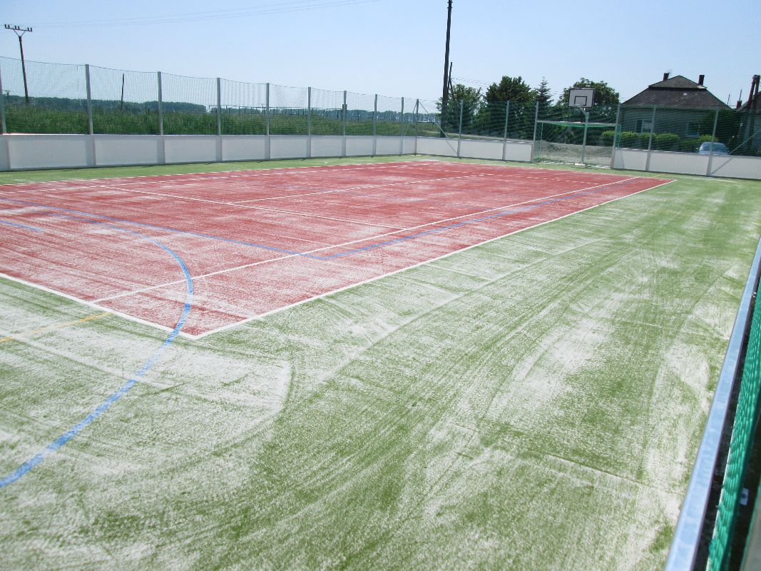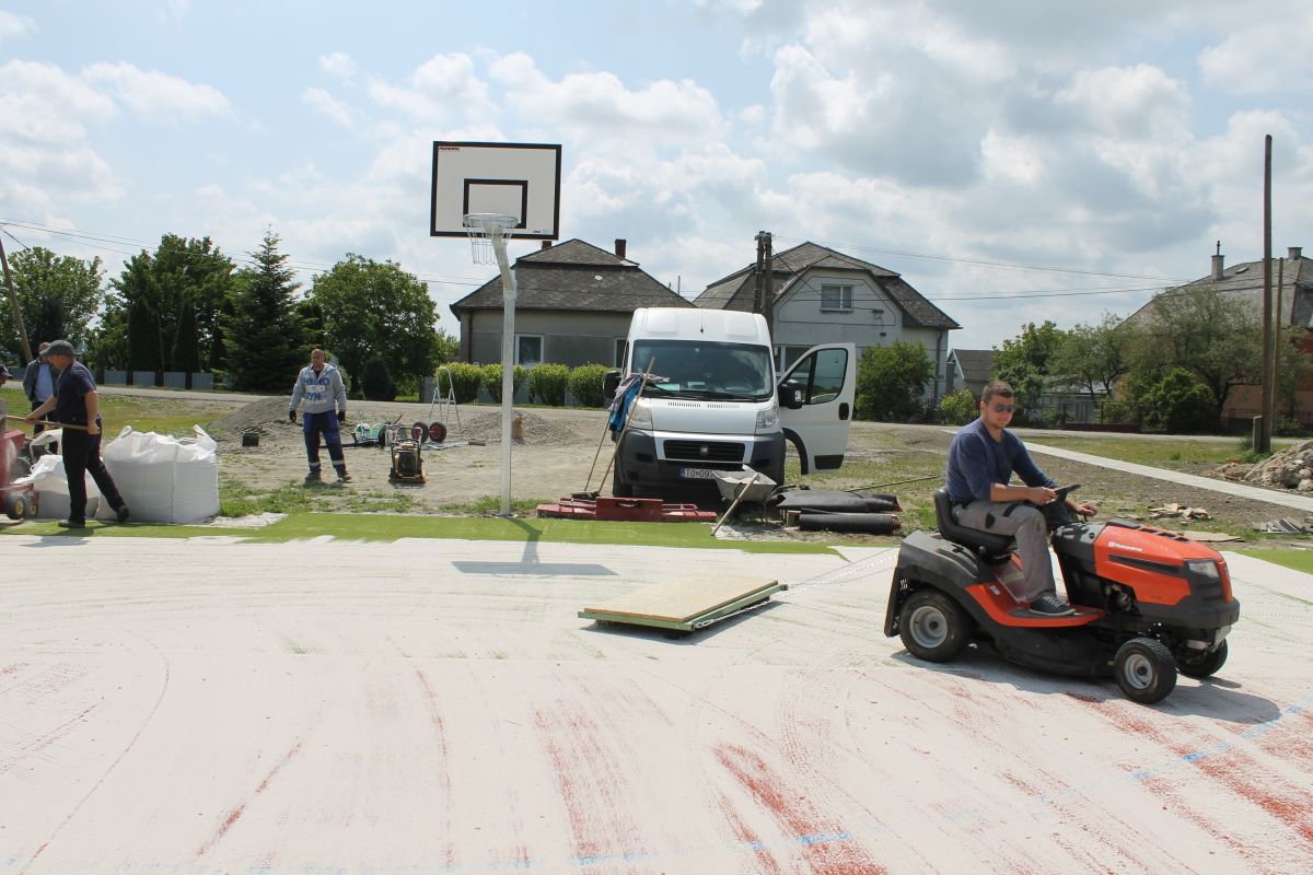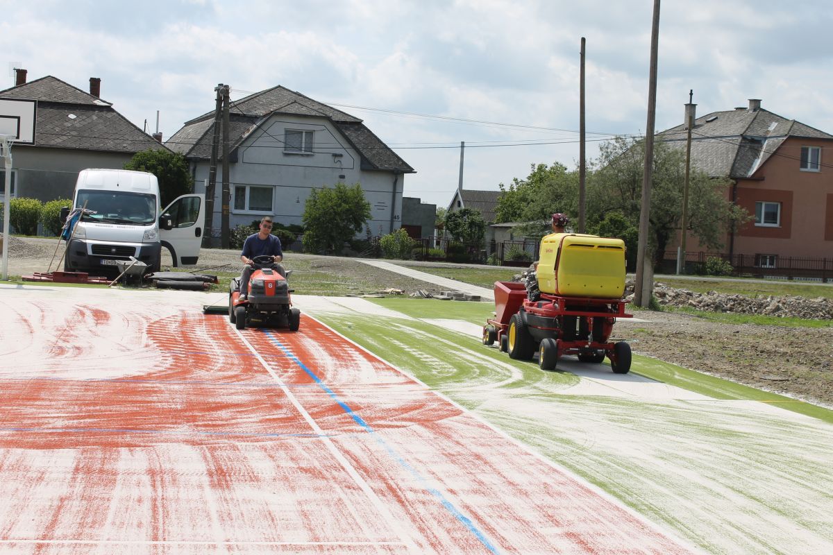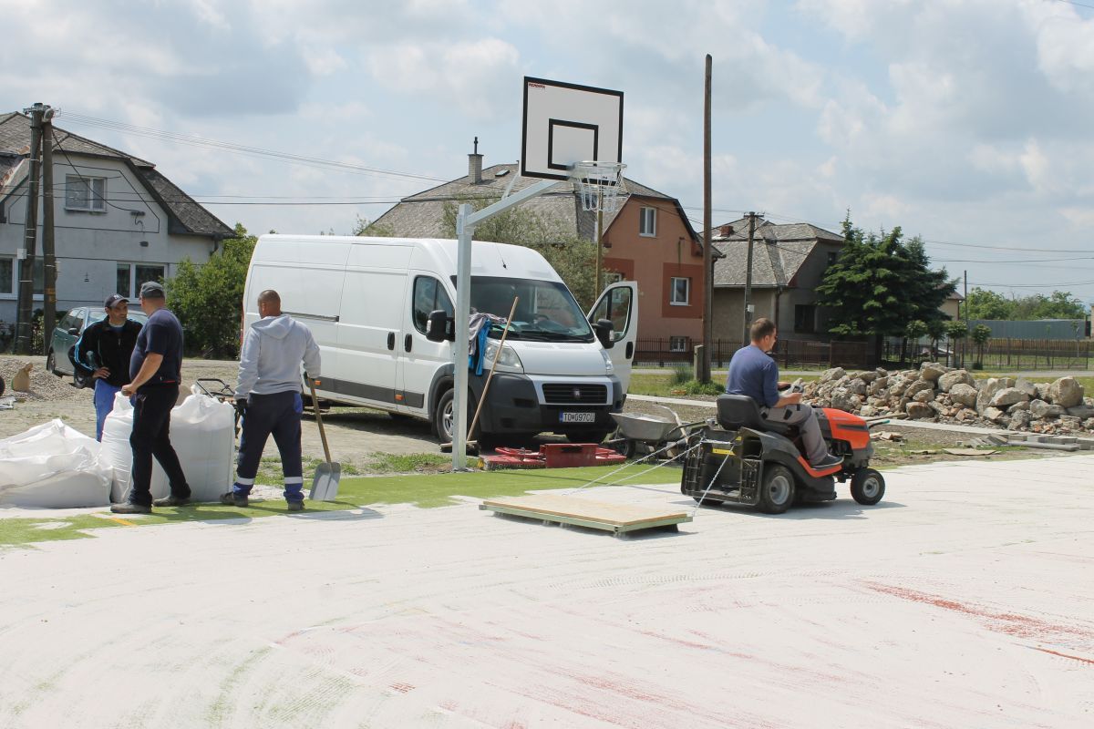 V marci bola dokončená spodná podkladová vrstva ihriska. V súčasnosti sa realizujú práce na zhotovení vrchnej časti multifunkčného ihriska. V dňoch 18. a 19. mája 2016 bol osadený dvojfarebný umelý trávnik, ktorého povrch sa následne pieskoval a valcoval. Vytvorený je chodník a namontované sú už 2 basketbalové stojany a koše. Na ihrisku už pracovníci osadili mantinely, priestor ihriska ohradili bezpečnostnou sieťou a namontované boli aj bránky na minifutbal. Na ihrisku sa pracuje naďalej.