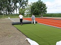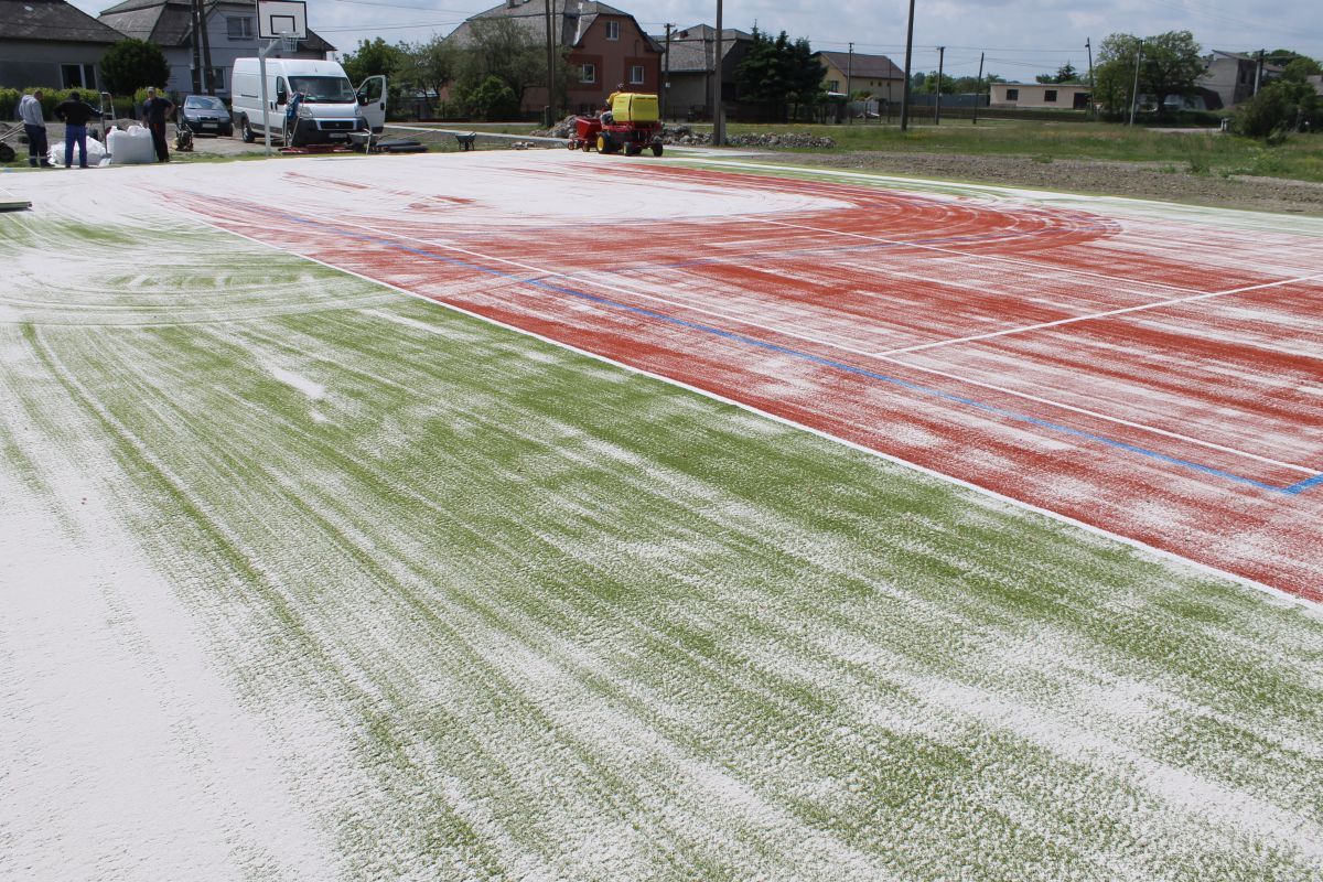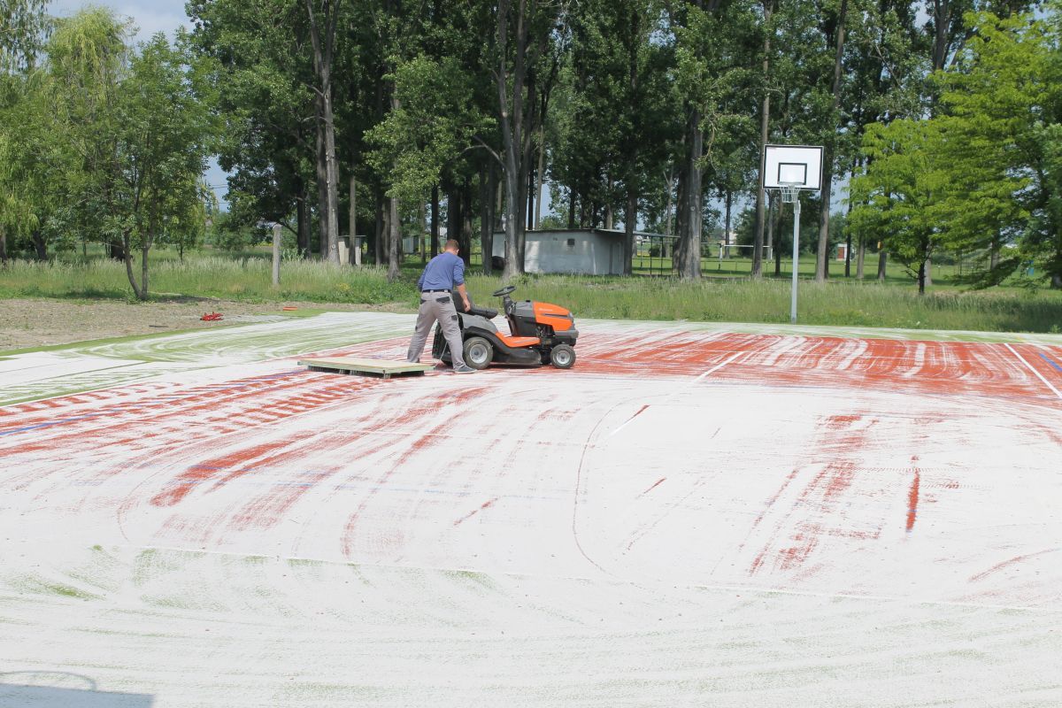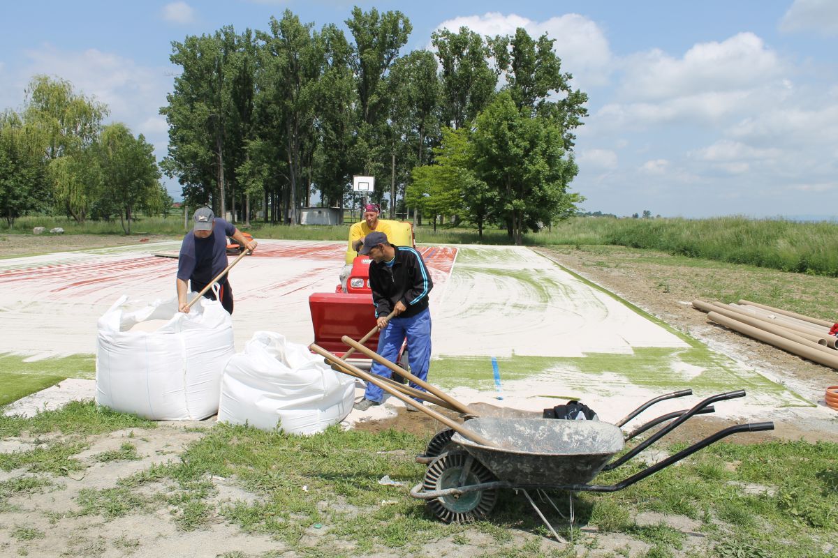V marci bola dokončená spodná podkladová vrstva ihriska. V súčasnosti sa realizujú práce na zhotovení vrchnej časti multifunkčného ihriska. V dňoch 18. a 19. mája 2016 bol osadený dvojfarebný umelý trávnik, ktorého povrch sa následne pieskoval a valcoval. Vytvorený je chodník a namontované sú už 2 basketbalové stojany a koše. Na ihrisku už pracovníci osadili mantinely, priestor ihriska ohradili bezpečnostnou sieťou a namontované boli aj bránky na minifutbal. Na ihrisku sa pracuje naďalej.