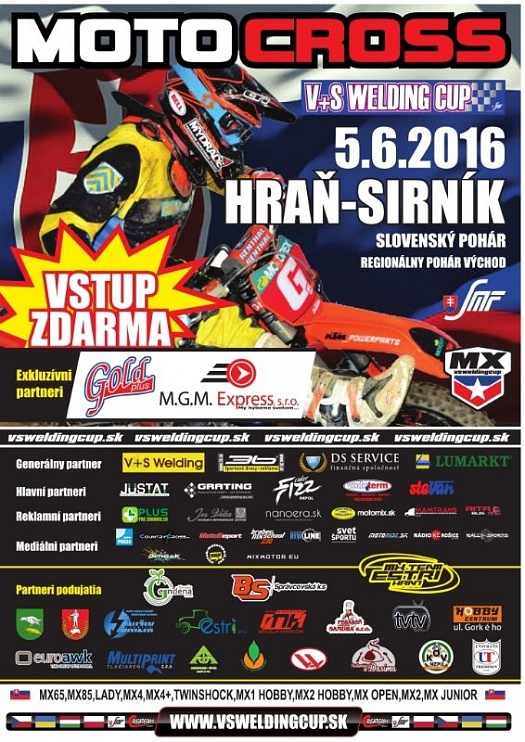 Nedeľu 5. júna 2016 sa uskutočnia preteky Slovenského pohára - Regionálneho pohára Východ „MOTOCROSS V+S WELDING CUP na trati HRAŇ - SIRNÍK“.