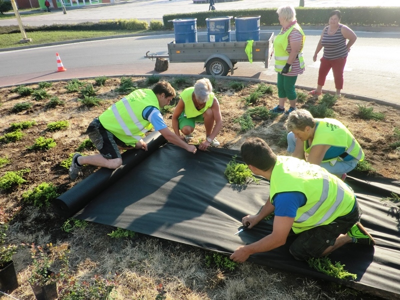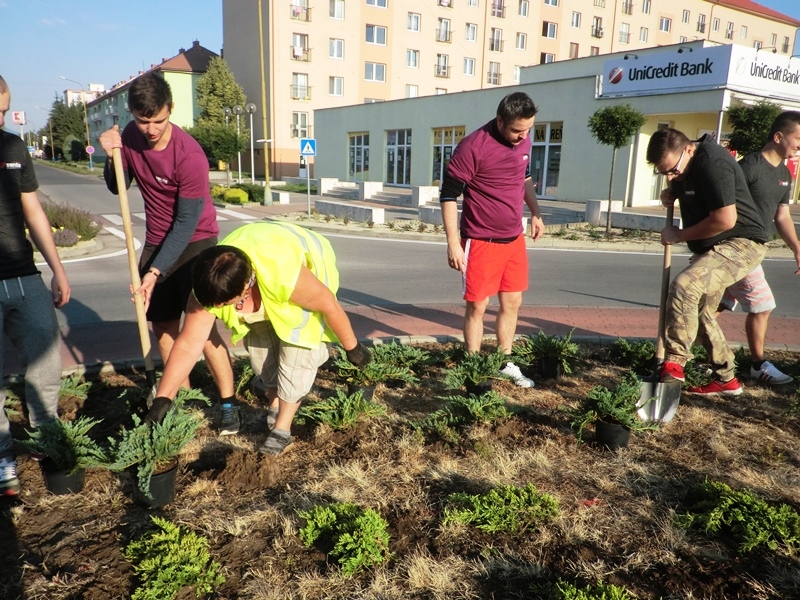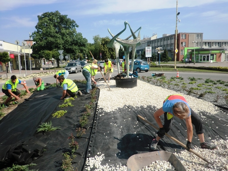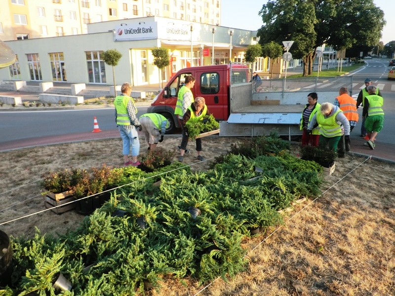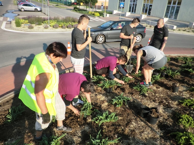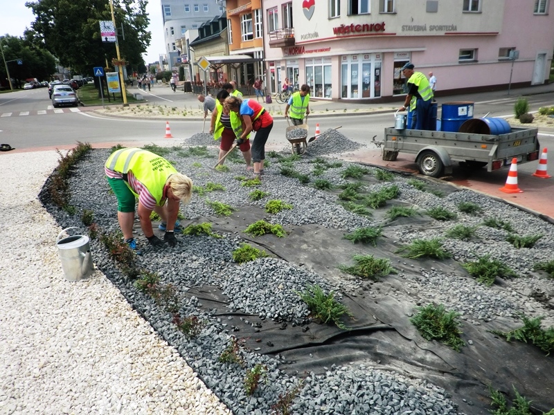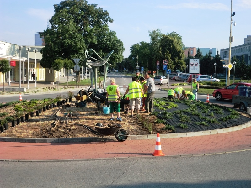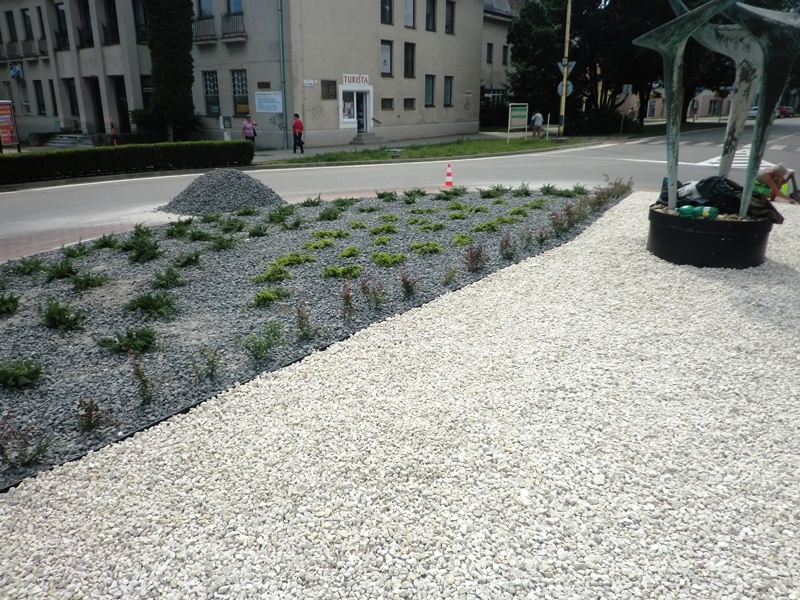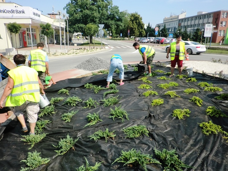 Štvrtok 9. júna 2016 zrealizovali pracovníci Mestského hospodárskeho strediska výsadbu a dvojfarebný štrkový zásyp kruhového objazdu pri Námestí Štefana Boleslava Romana v Trebišove. Plocha tejto okružnej križovatky má rozlohu 150 m2. Na obnovení verejného priestranstva sa finančne podieľala aj trebišovská firma SWIDA Innovative s.r.o. Uvedená spoločnosť prispela sumou 383,76 € na nákup 82 ks sadeníc dráča Thunbergovho ‘Atropurpurea‘. Zástupcovia firmy asistovali pri prácach na výsadbe.
