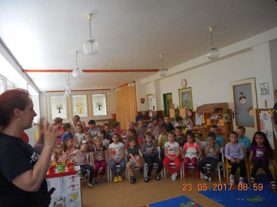 Mestská polícia zrealizovala dve odborné prednášky na tému Dopravná výchova - utorok 23.05.2017 pre 45 detí z Materskej školy na Ul. 1. decembra a pondelok 29.05.2017 pre 120 detí 2. a 3. ročníka ZŠ na Ul. I. Krasku v Trebišove. Konkrétnou témou stretnutia bolo „Bezpečné správanie sa detí ako účastníkov cestnej premávky a základné dopravné značky.“