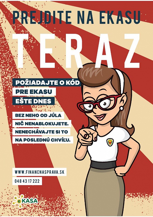 Finančná správa spustila projekt eKasa. Ide o online napojenie pokladníc na finančnú správu. Nové povinnosti sa týkajú všetkých podnikateľov, ktorí evidujú tržbu. Podnikatelia musia svoje pokladnice upraviť alebo vymeniť a zapojiť sa do systému eKasa najneskôr od 1. júla 2019. Finančná správa v tejto súvislosti dáva do pozornosti nasledovný oznam: