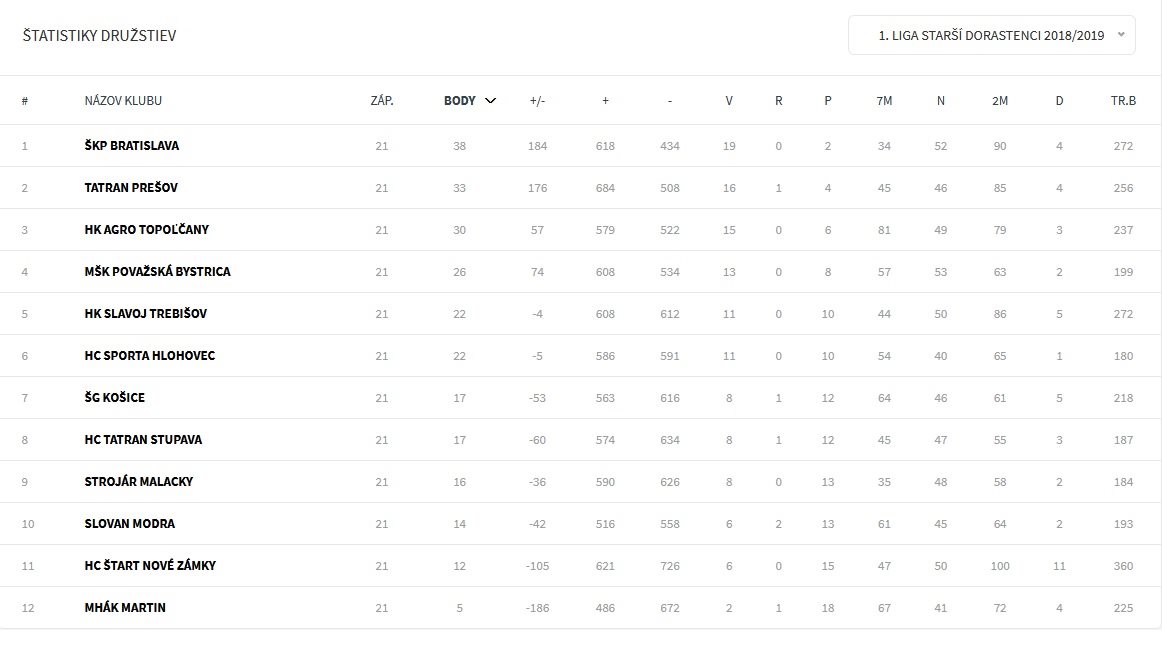 HK SLAVOJ TREBIŠOV - HC Tatran Stupava 40:26 /16:15/