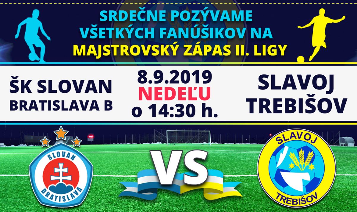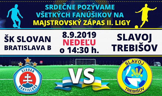 Majstrovský zápas II. ligy sa uskutoční nedeľu 8. septembra 2019 so začiatkom o 14:30 hod. medzi ŠK SLOVAN Bratislava B - FK SLAVOJ Trebišov na ihrisku futbalového štadióna v Bratislave.
