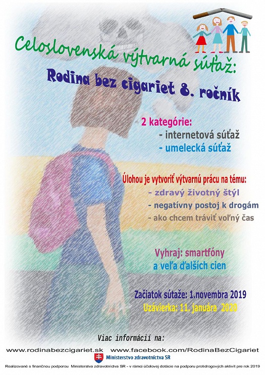 Občianske združenie Rodina a spoločnosť organizuje aj pre školský rok 2019/2020 ročník výtvarnej ďalší súťaže: Rodina bez cigariet 8. ročník.
