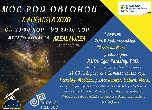 Ako každý rok, aj tento organizuje trebišovské múzeum podujatie NOC POD OBLOHOU, ktoré bude spojené s pozorovaním meteorického roja PERZEIDY a takisto planét: Jupiter, Saturn a Mars.