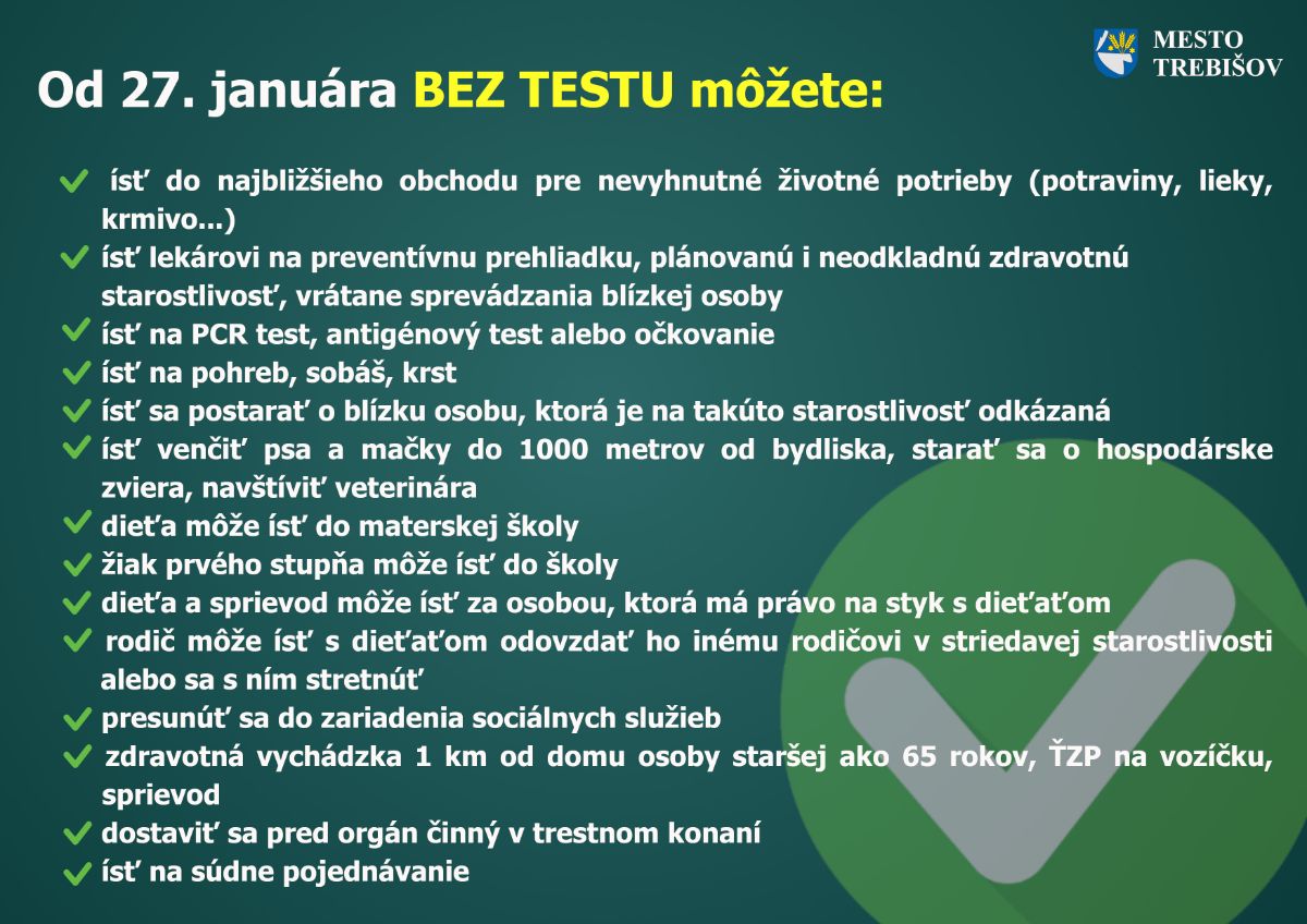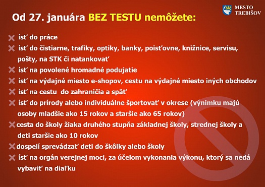 Mesto Trebišov aktívne pripravuje skríningové testovanie obyvateľov na prítomnosť ochorenia COVID-19. Realizovať ho bude, s použitím antigénových testov, najbližší víkend 23. a 24. januára 2021.