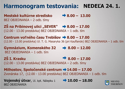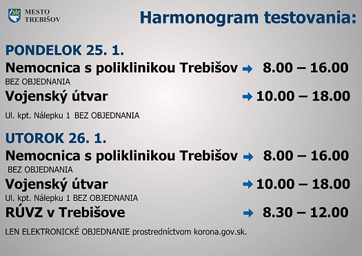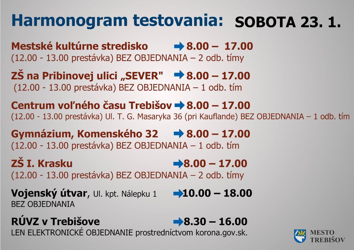 1. KOLO ANTIGÉNOVEHO TESTOVANIA V TREBIŠOVE - 22. - 24. 1.