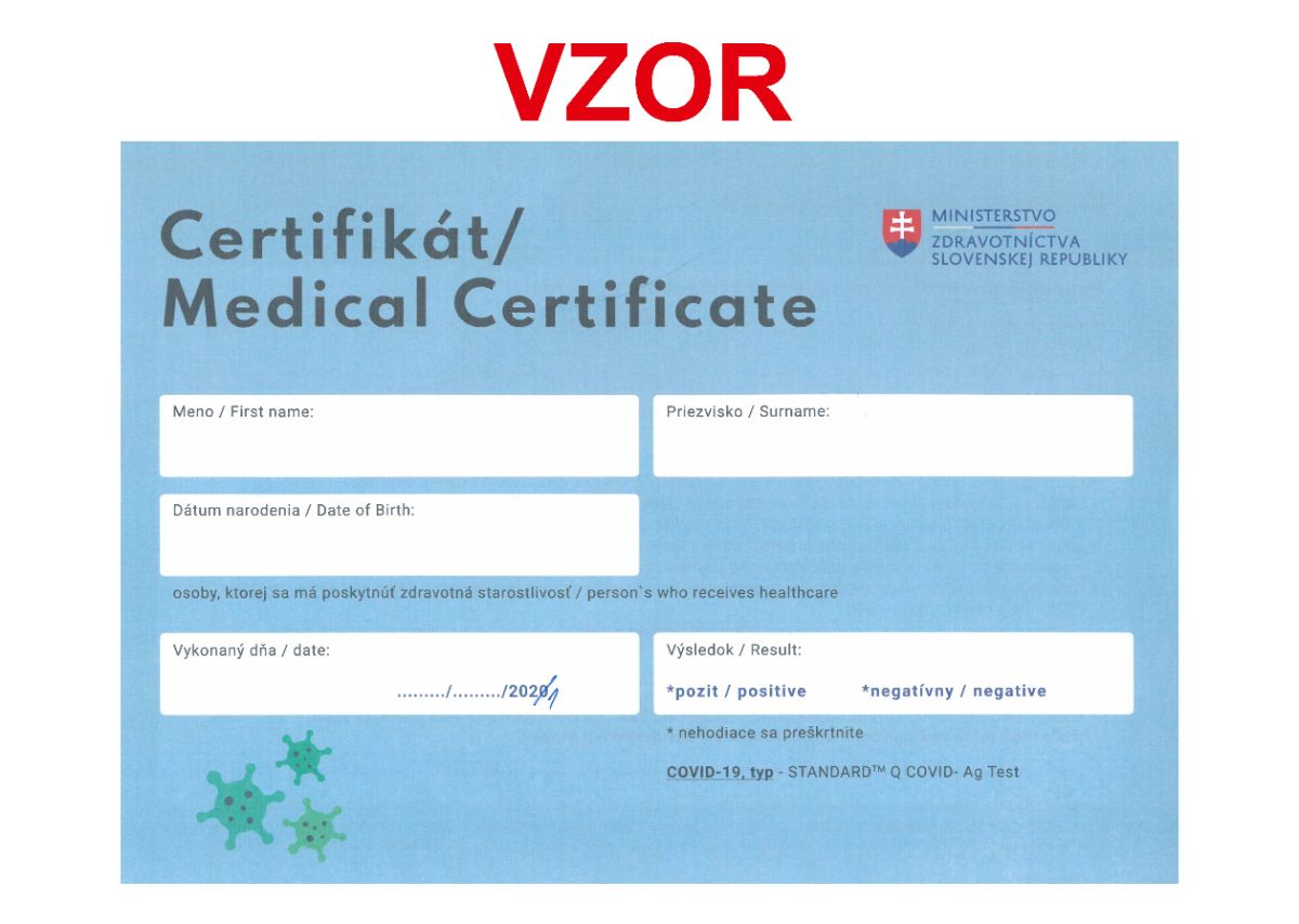 Na základe skutočnosti, že mestu Trebišov boli z OÚ v Trebišove, odboru krízového riadenia, doručené certifikáty z roku 2020 (vydávané pri celoplošnom testovaní v roku 2020), upozorňujeme občanov, že počas skríningového testovania na COVID-19 budú, podľa odporúčania OÚ v Trebišove, tieto certifikáty vydávané s opraveným rokom (číslica 0 sa preškrtne a dopísaná bude 1) viď. vzor certifikátu v článku.