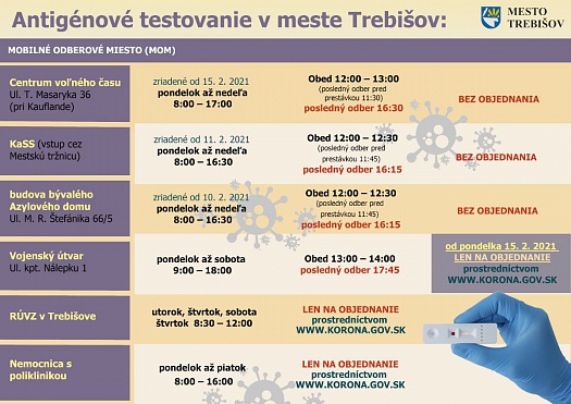Mobilné odberové miesta (MOM) na antigénové testovanie zriadené na území Trebišova