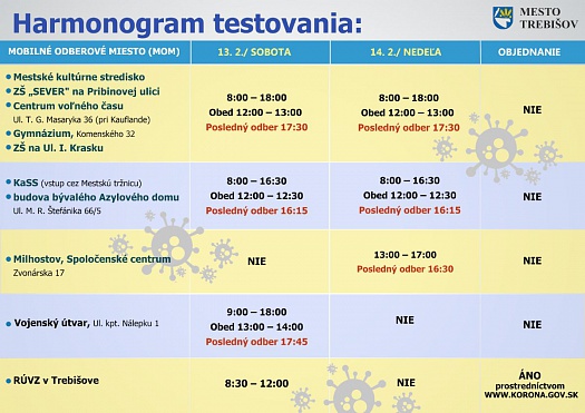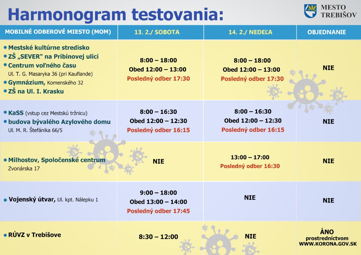 4. KOLO VÍKENDOVÉHO TESTOVANIA V MESTE TREBIŠOV (13. - 14. február)