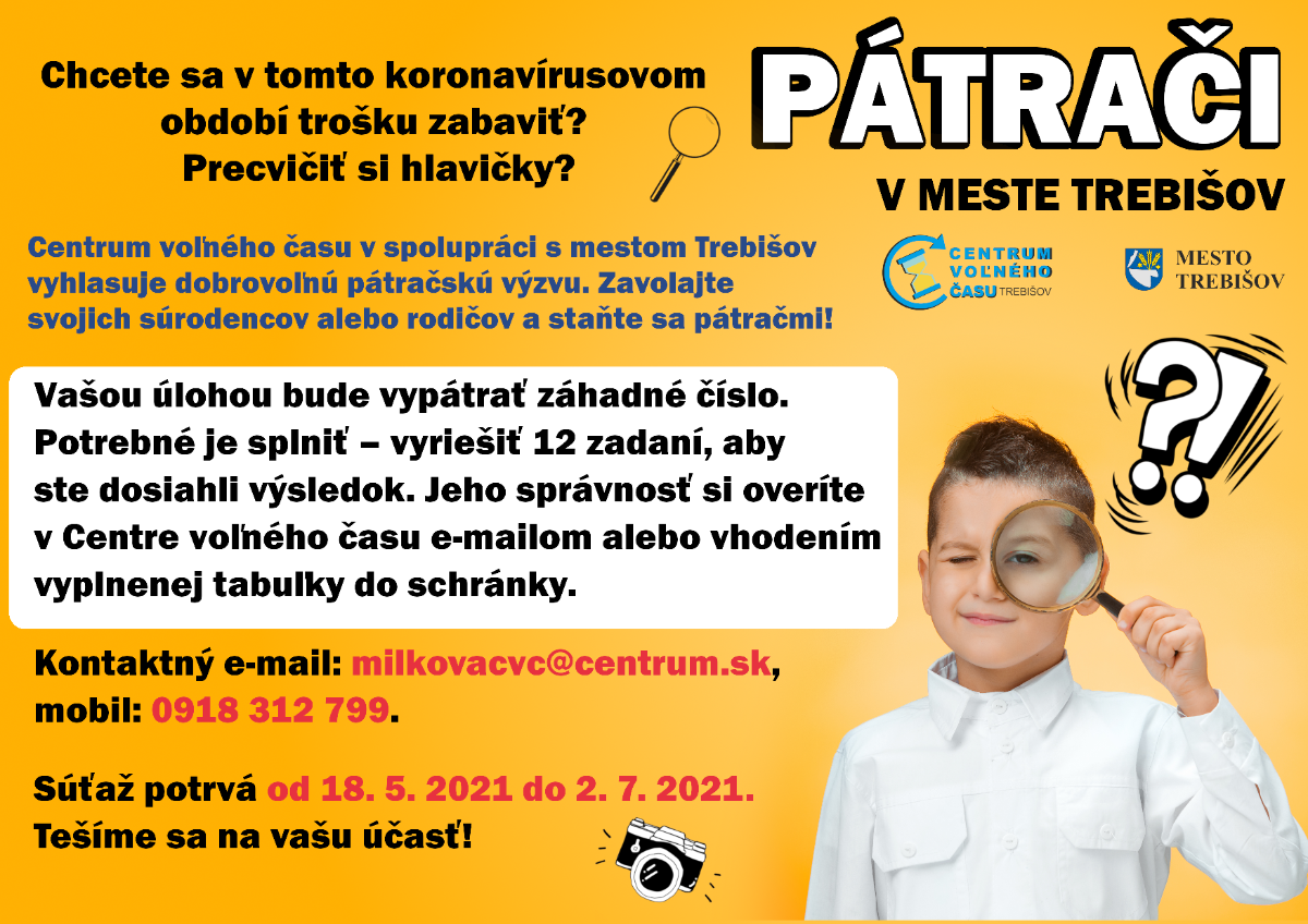Chcete sa v tomto koronavírusovom období trošku zabaviť? Pozývame deti a ich rodičov precvičiť si „hlavičky“ v súťaží PÁTRAČI V MESTE TREBIŠOV.