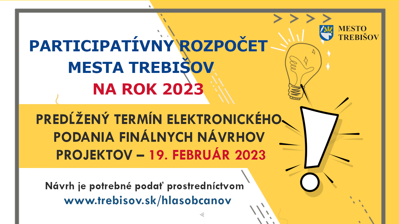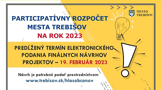 Samospráva mení pôvodný termín – predlžuje časový horizont na predloženie projektových návrhov a to až do 19. februára 2023 na https://trebisov.hlasobcanov.sk