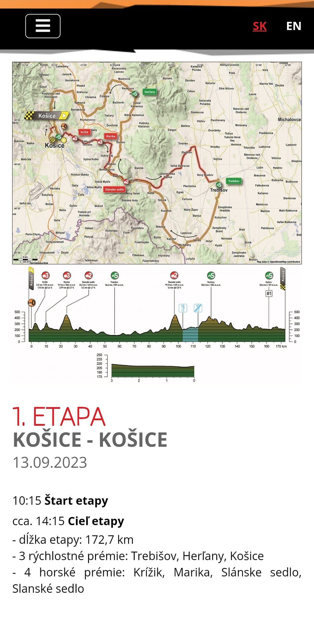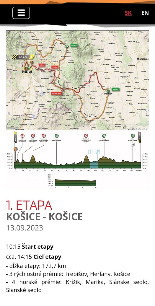 Slovenské najslávnejšie cyklistické preteky už svojou prvou etapou stredu 13. septembra medzi 11.25 a 11.45 navštívia aj mesto Trebišov.