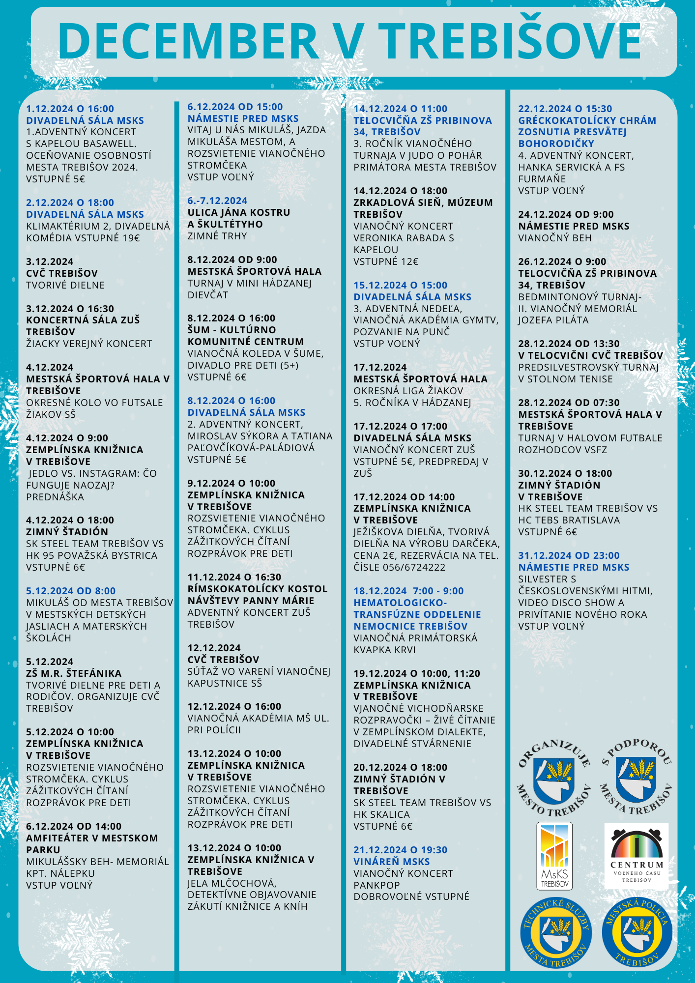 Veríme, že si spolu s nami spríjemnite záver roka na niektorom z kultúrnych, alebo športových podujatí.