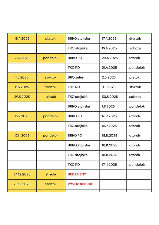 V priebehu roka 2025 dôjde počas sviatočných dní k úprave vývozu odpadu.