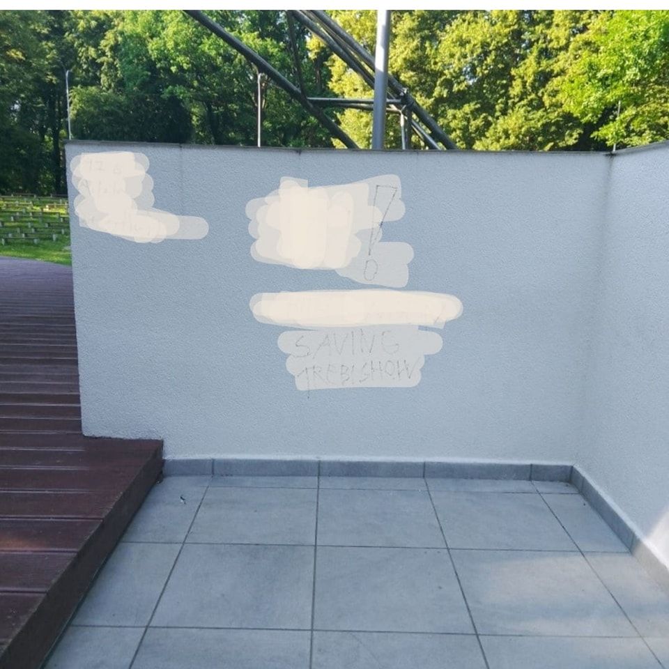 - Následne sa presunuli na amfiteáter, kde zotrvali do 02:30 a kresbami poškodili jeho priestory