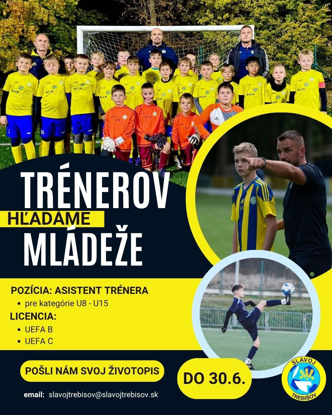 FK Slavoj Trebišov rozširuje svoje trénerské rady a hľadá nových mládežníckych trénerov na pozíciu: