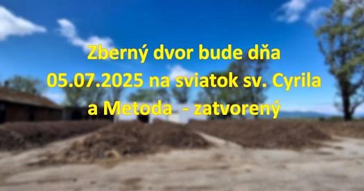 Zberný dvor bude dňa 05.07.2025 na sviatok sv. Cyrila a Metoda zatvorený.