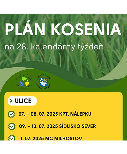 V aktuálnom týždni prebieha kosenie v týchto uliciach mesta.