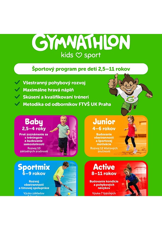 Do nášho mesta prichádza nový športový program pre deti vo veku od 2,5 do 11 rokov s názvom Gymnathlon.