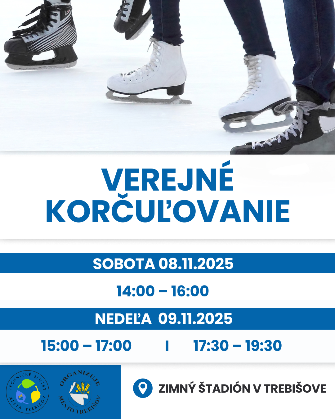 Ľadová plocha zimného štadióna je pre vás pripravená v uvedených časoch.