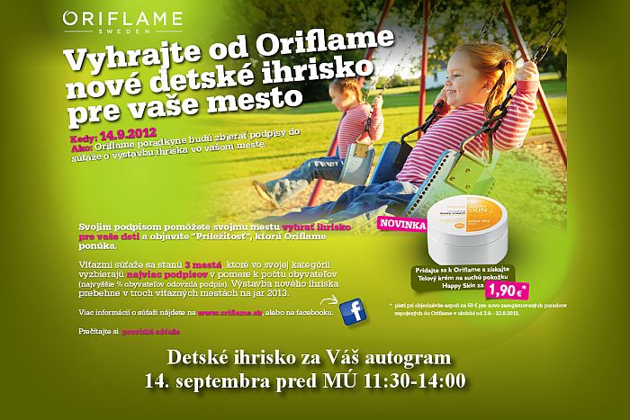 Dňa 14. 9. 2012 v čase od 00:00 do 24:00 budú kozmetické poradkyne Oriflame vo vybraných mestách zbierať podpisy a základné informácie (meno, priezvisko, kontakt) na vopred pripravený podpisový hárok.