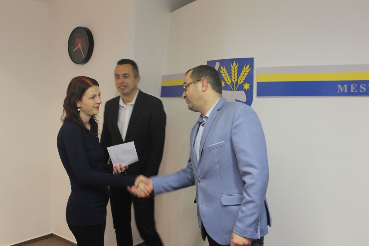 Štvrtok 22.12.2016 prevzali Mgr. Denisa Maťašová, Radoslav Širák a Ingrida Lukáčová finančný dar z rúk darcov v kancelárii primátora mesta na Mestskom úrade v Trebišove.