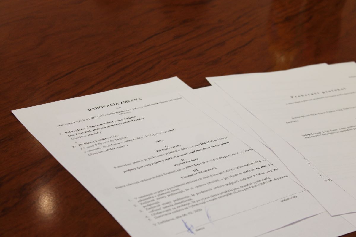 Predstavitelia mesta sa rozhodli podporiť trebišovských futbalistov - starších dorastencov sumou 200 EUR, ktorú prevzal vedúci mužstva a tréner Jozef Šanta v zasadačke primátora na MsÚ.