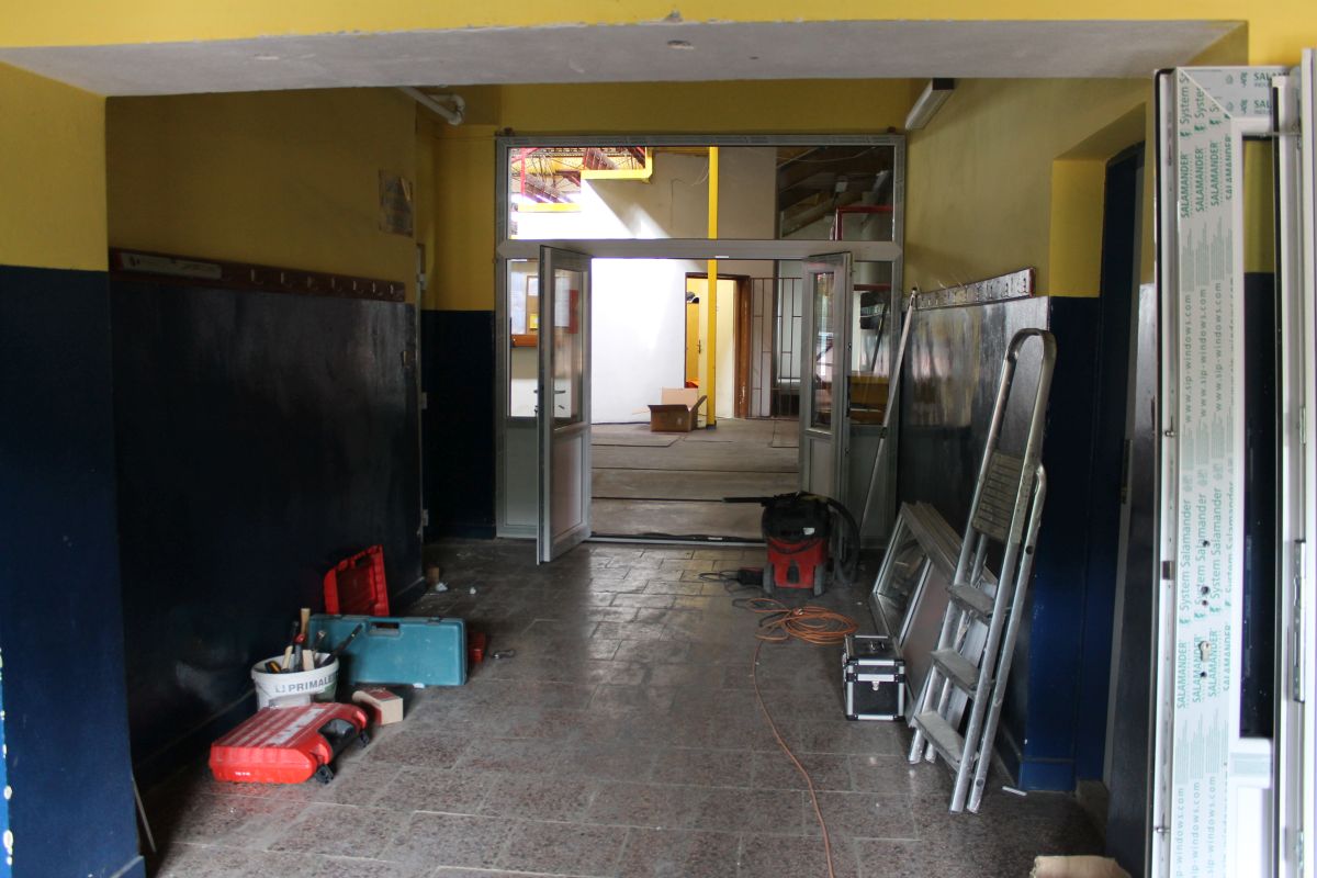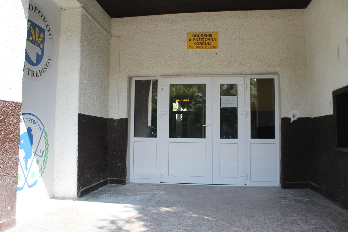 Staré vchodové dvere do zimného štadióna mali najlepšie časy za sebou. V máji 2014 boli osadené nové plastové dvere, nielen vchodové, ale aj vstupné dvere z predsiene do haly.
