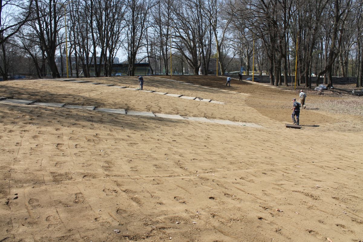 Na amfiteátri bol v apríli 2012 vysiatý trávnatý porast.