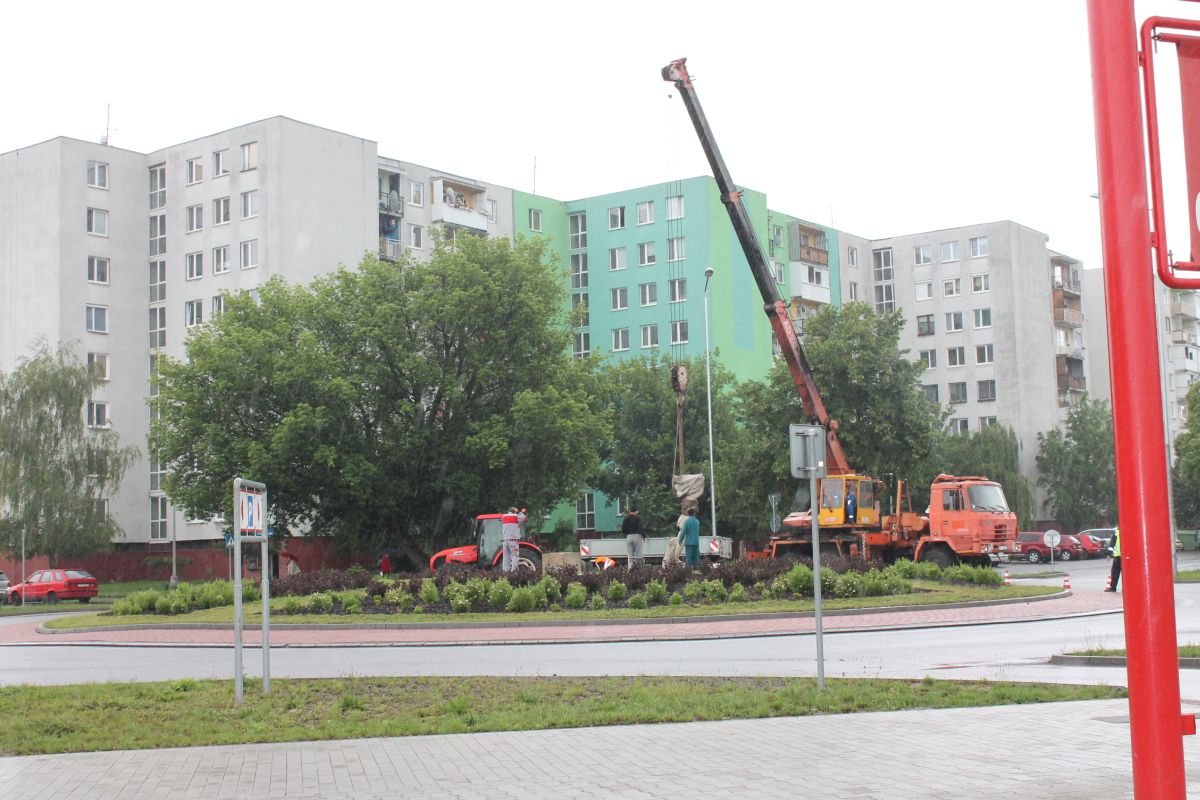 V máji 2012 pribudla na kruhový objazd na Komenského ulici socha Radosť (1977) od akademického sochára z Trenčianskeho kraja Ladislava Šichmana, predtým umiestnená pred budovou Vagonára.