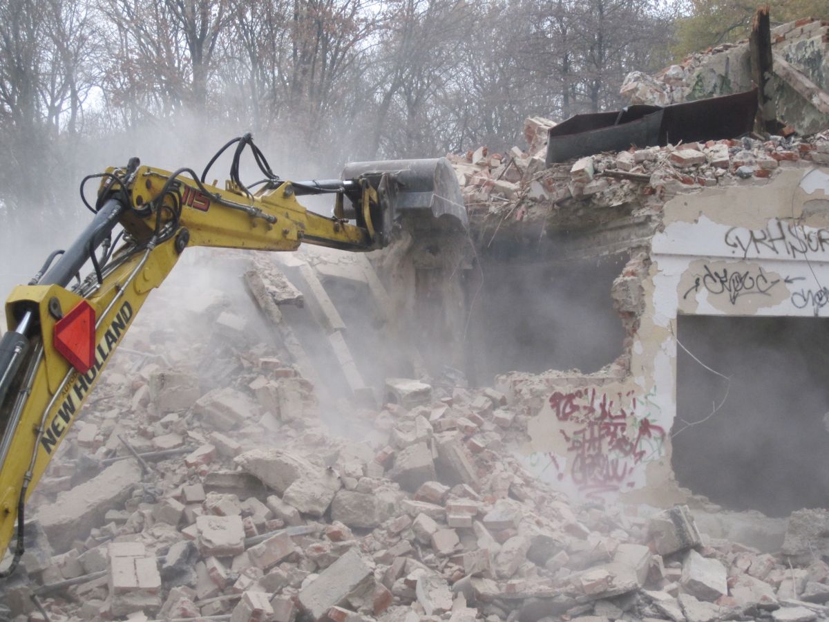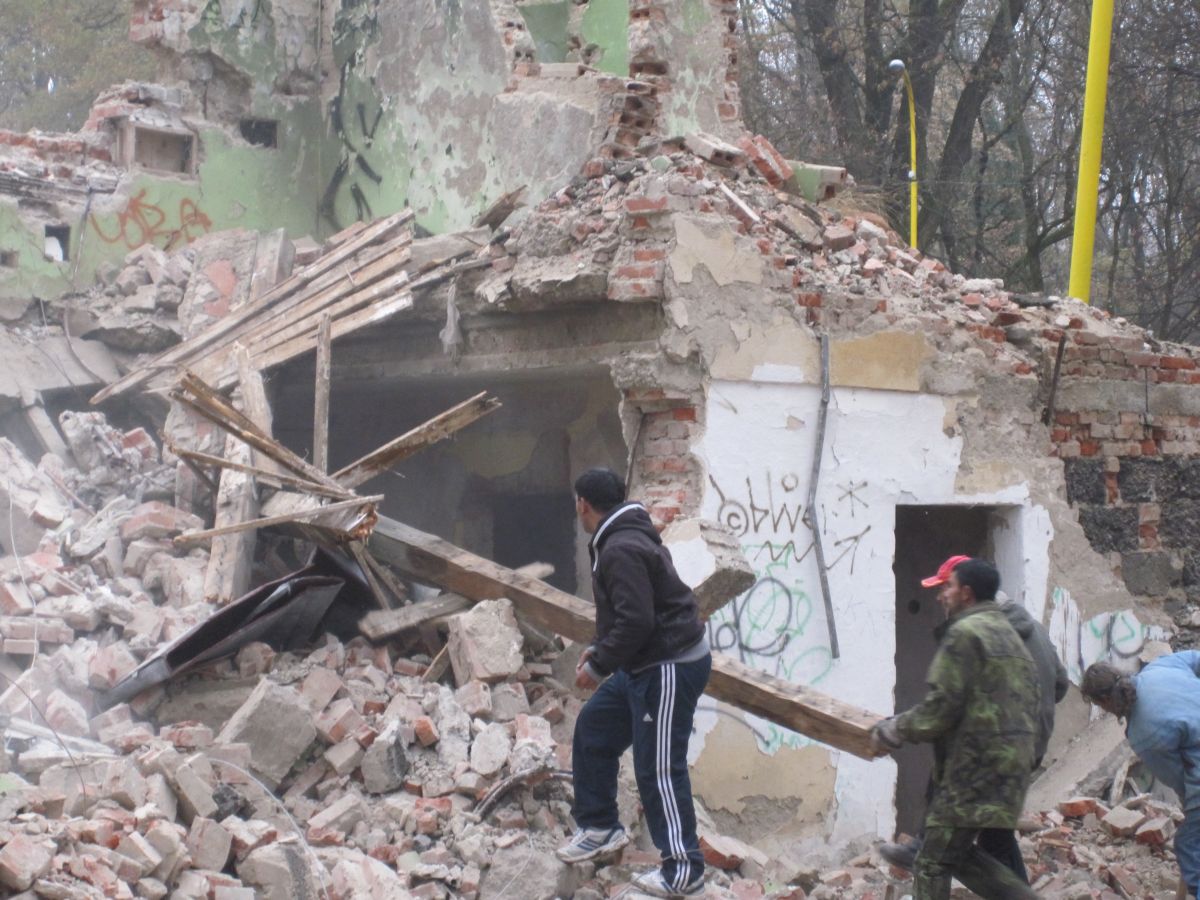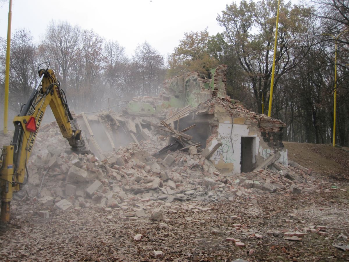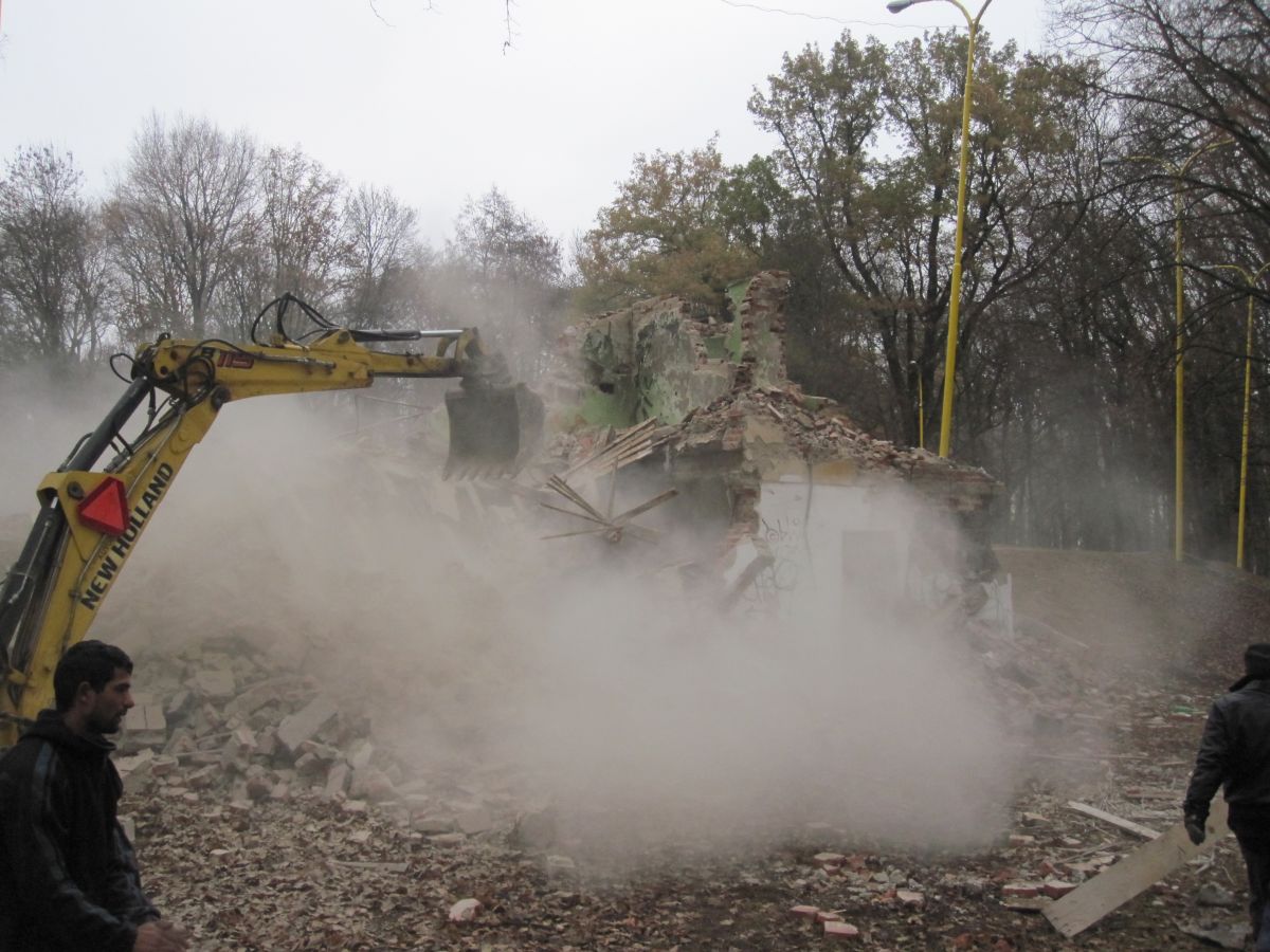 Búranie premietacej budovy na amfiteátri v novembri 2011.