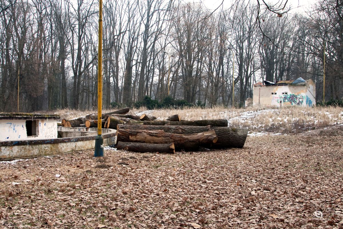 Búranie premietacej budovy na amfiteátri