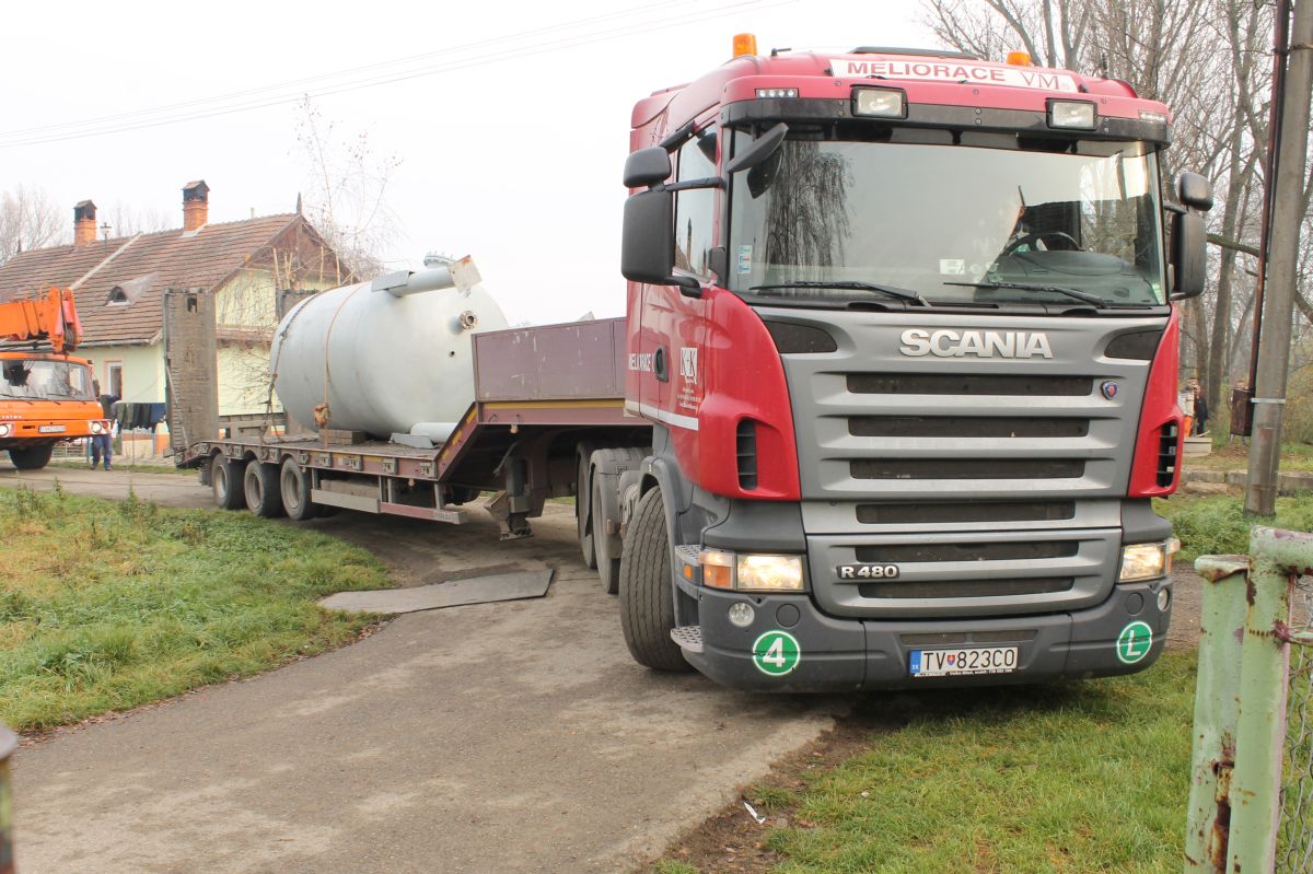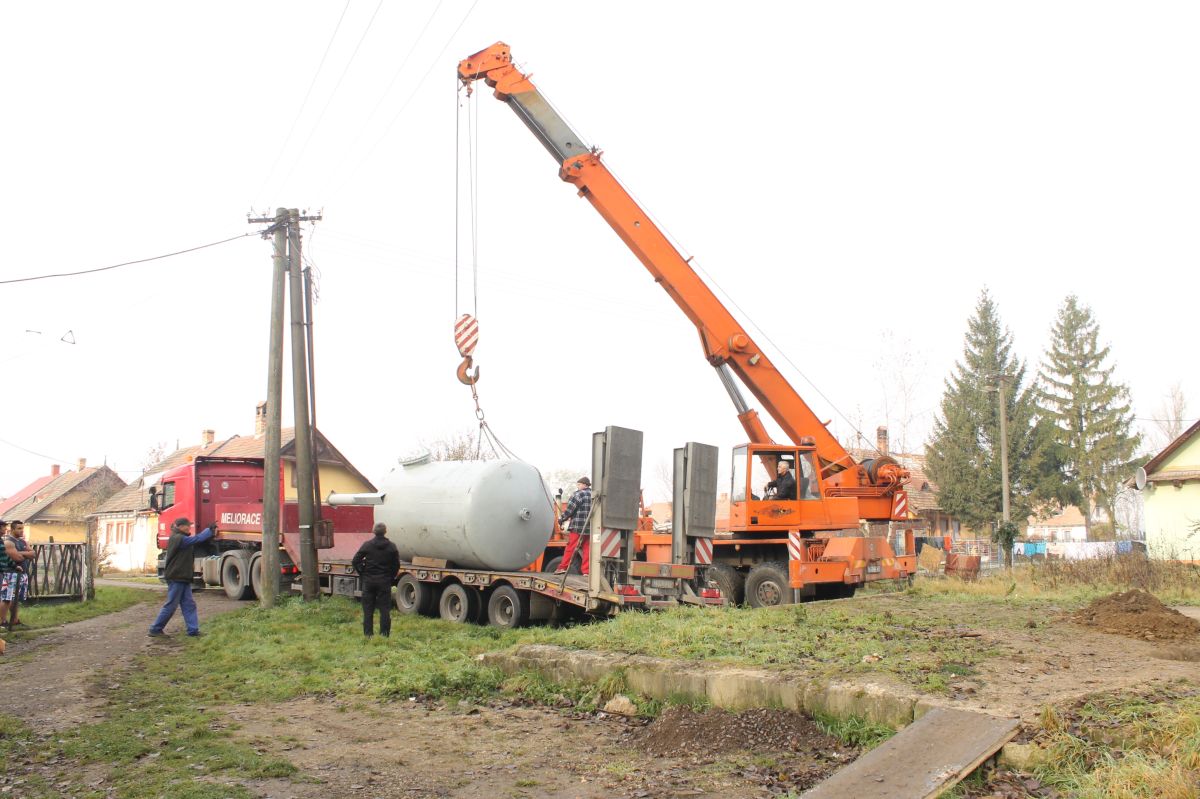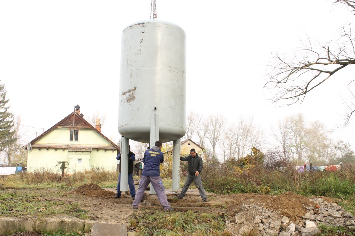 Mesto Trebišov osadilo 12.11.2014 vodnú nádrž s úžitkovou vodou na pomoc pre obyvateľov mestskej časti Nový Majer.