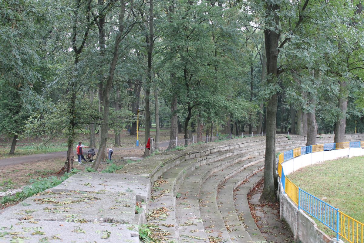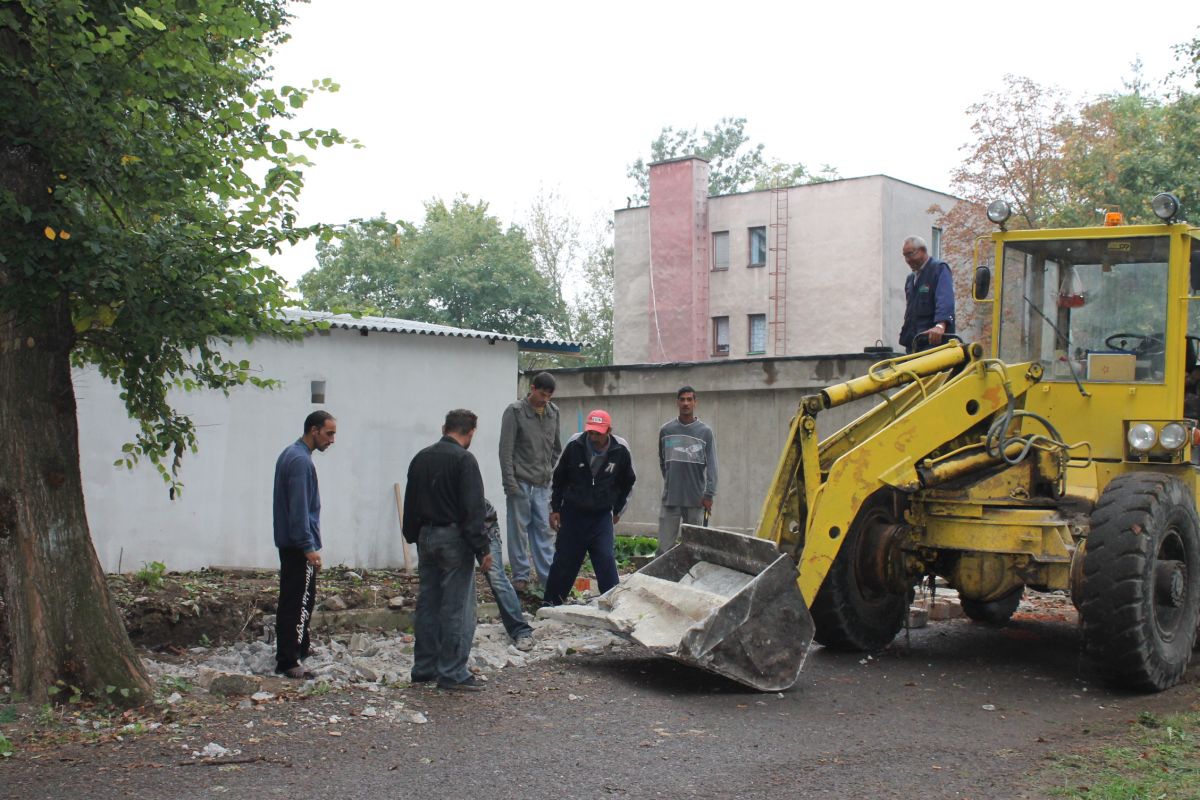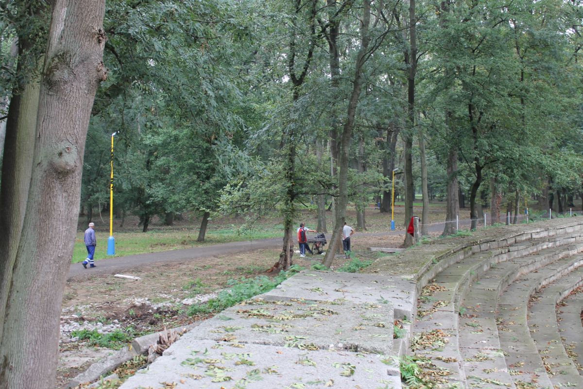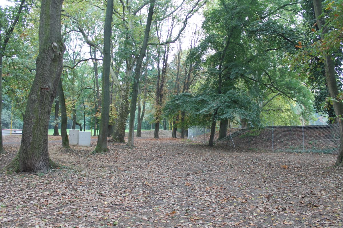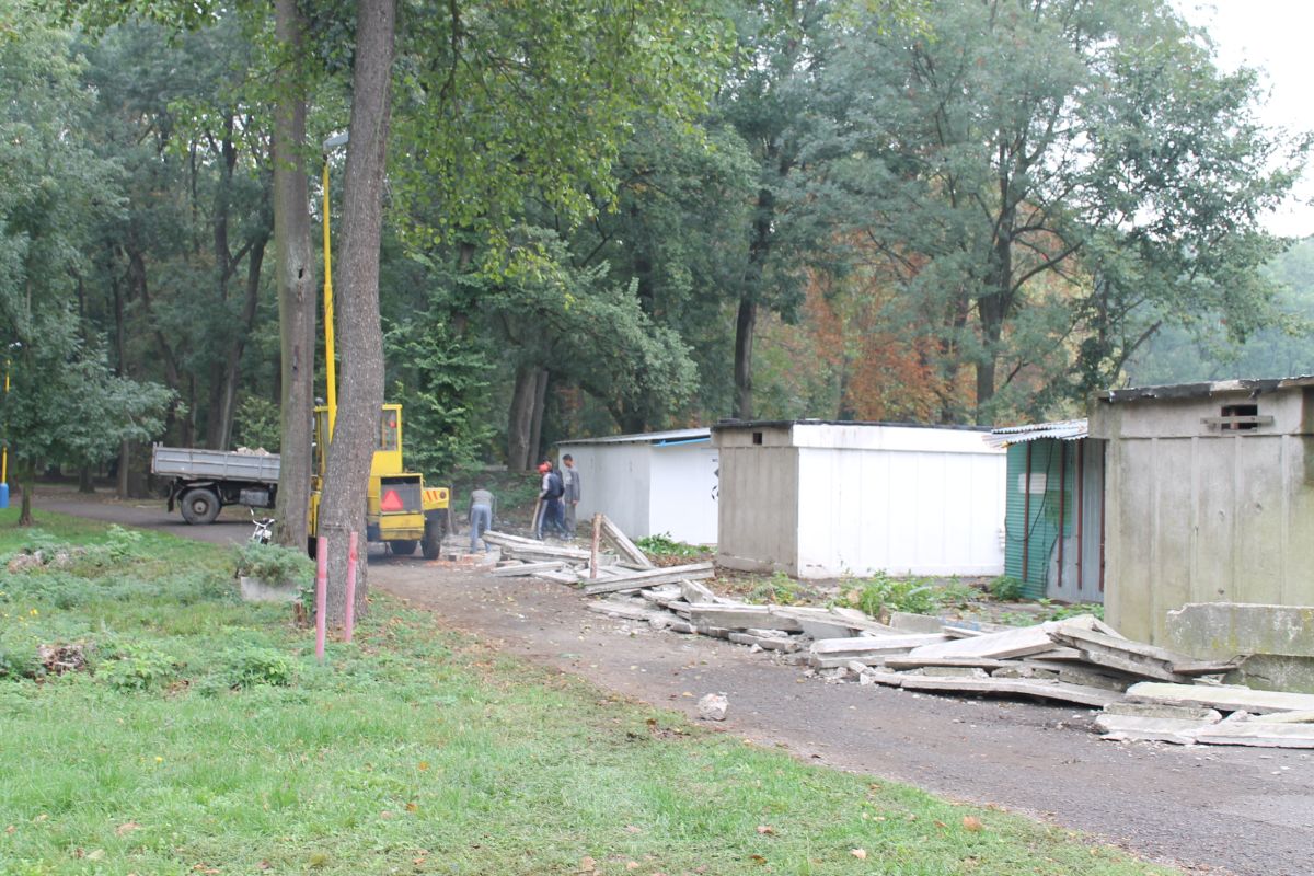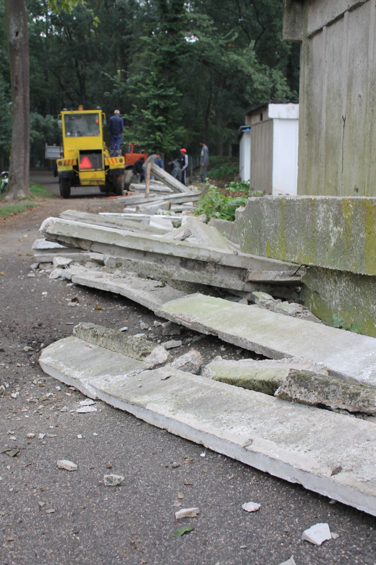 Demontáž betónového plota okolo futbalového ihriska v parku