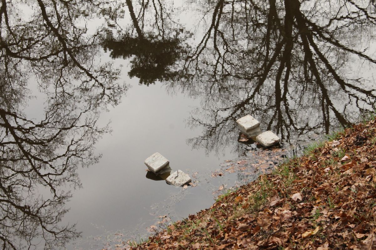 Po vyčíňaní vandalov skončila jedna z nových lavičiek v mestskom parku pod vodou.