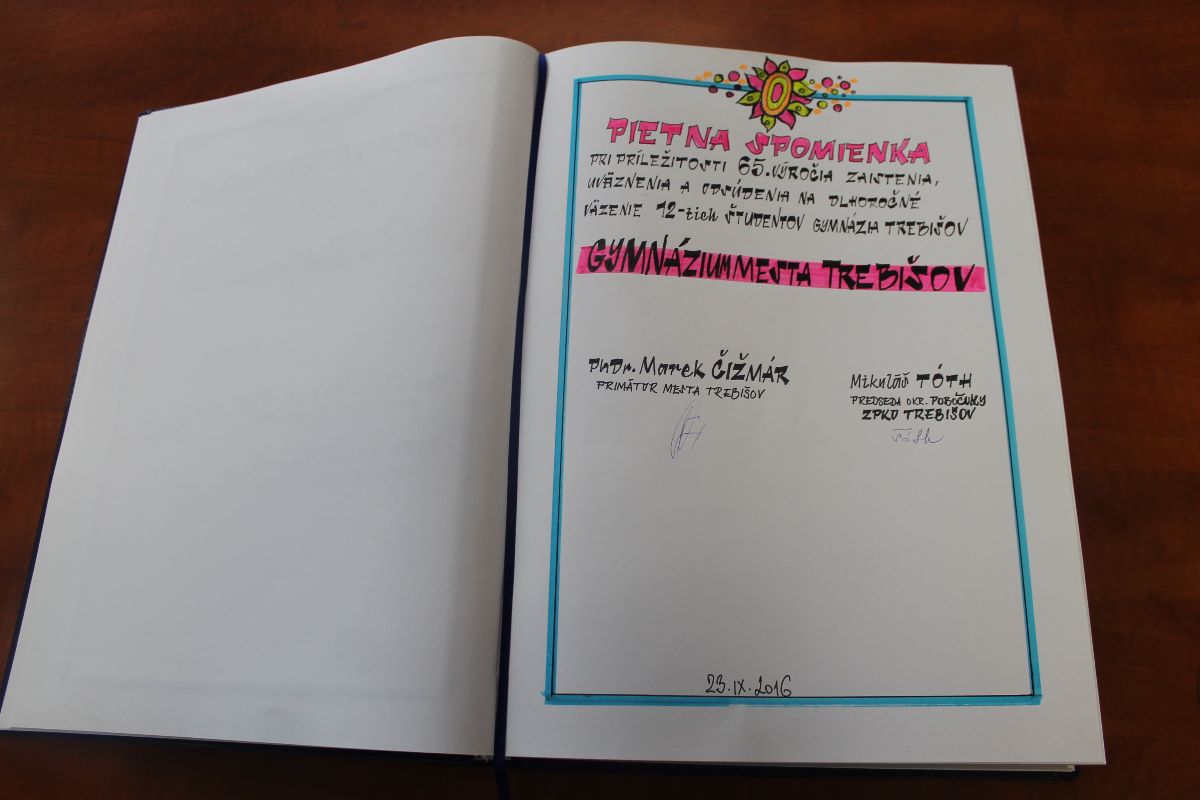 Združenie Politických väzňov Zväzu protikomunistického odboja v okrese Trebišov, celý Zväz protikomunistického odboja na Slovensku a Mesto Trebišov si pripomenuli, pri pamätnej tabuli v budove trebišovského gymnázia, pietnu spomienku venovanú 65. výročiu zaistenia, uväznenia a odsúdenia na dlhoročné väzenie študentov Gymnázia Trebišov.