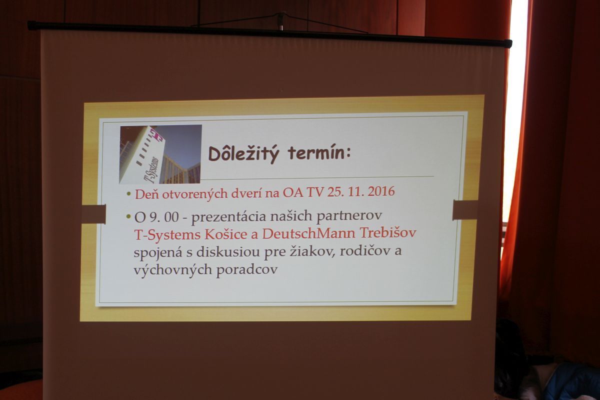 Deväť stredných škôl z Košického samosprávneho kraja sa predstavili na jednodňovej Burze informácií, ktorá sa uskutočnila štvrtok 3.11.2016 na pôde mesta Trebišov, v kultúrnom stredisku.